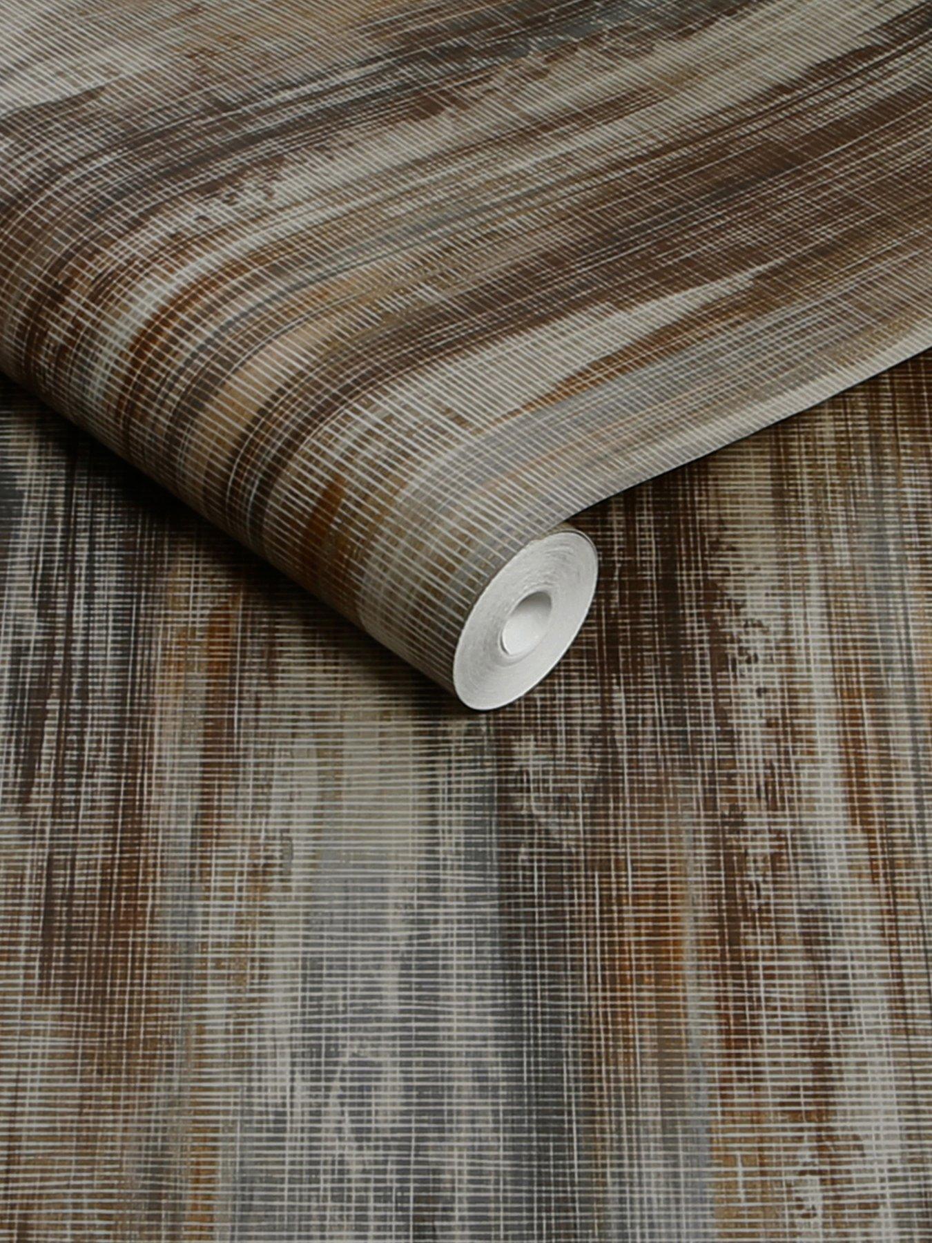 Abigail Ahern Wanderlust Amber - WallpaperWanderlust Amber is an enchanting wallpaper that evokes a sense of adventure and elegance. With its stunning blend of tones and textures, from copper brown, to charcoal grey, beige and cream, creating a sophisticated and opulent ambiance. This beautiful design perfectly sits upon a soft shimmer background which has subtle fibres throughout for an understated texture and finish.