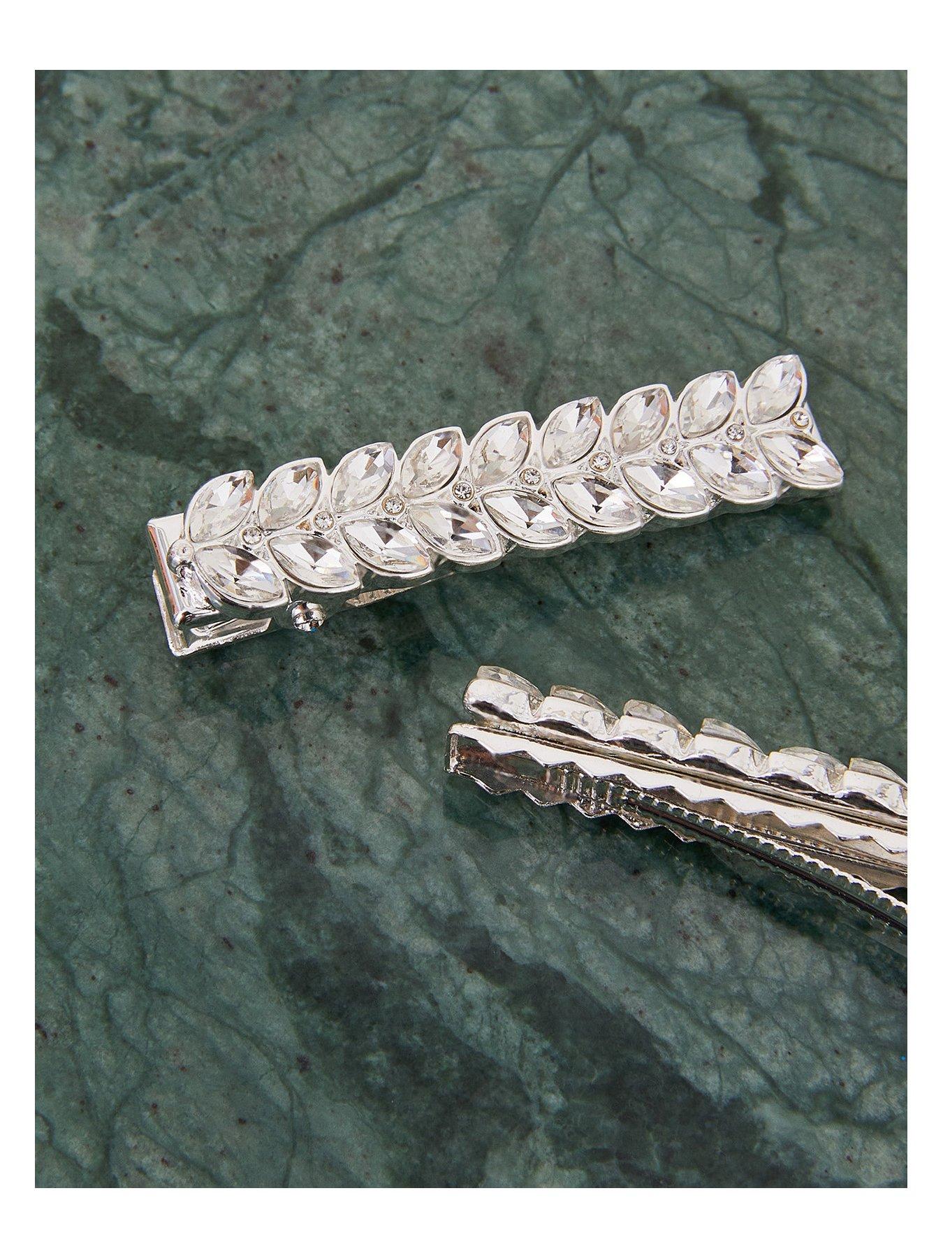 Accessorize 2 X Crystal Leaf Snap Clips
