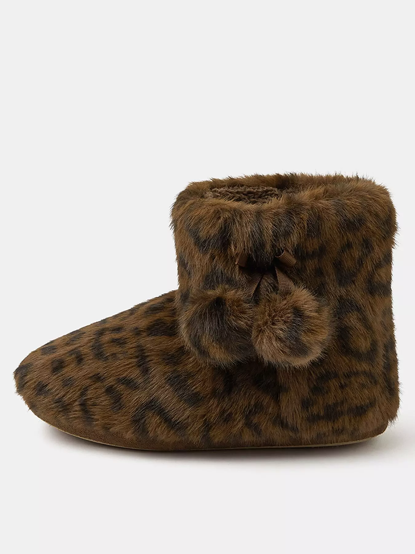 AccessorizeFluffy Leopard Slipper Boots - Brown