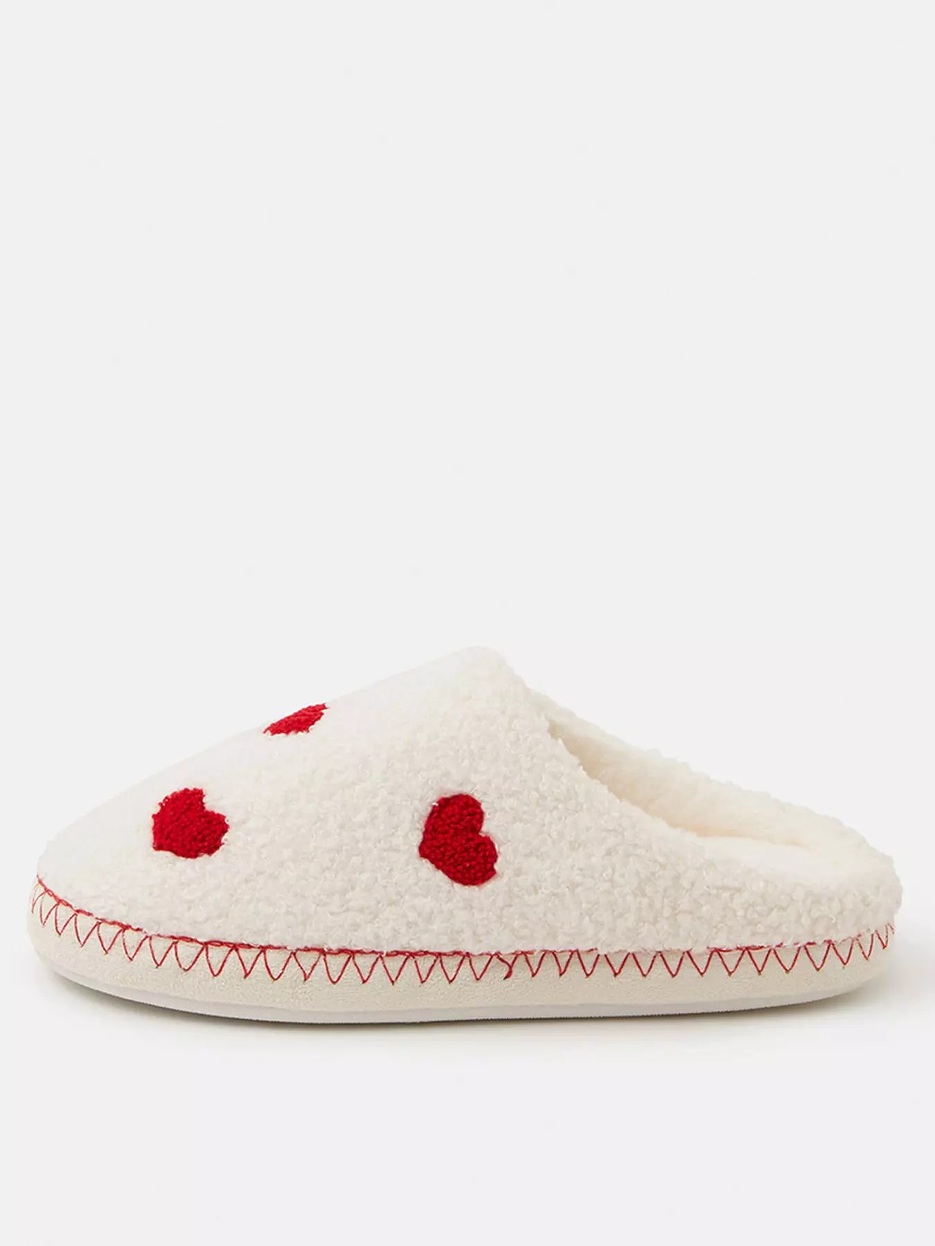 AccessorizeHeart Teddy Mule Slippers - Cream