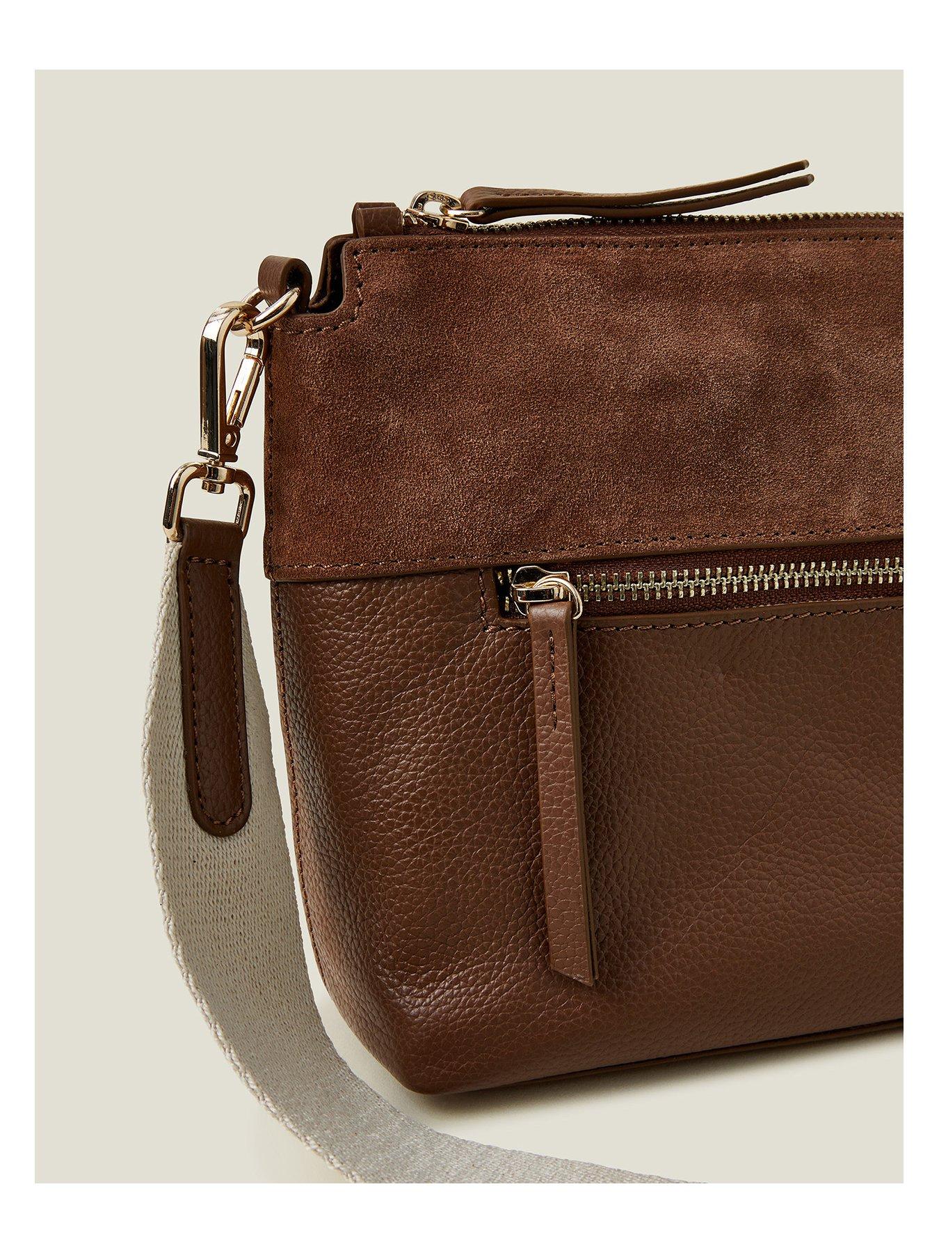 Accessorize Leather Webbing Cross Body - TanThrow on and go. Crafted with soft, supple leather and suede accents, this cross-body bag features a roomy main compartment with slip pockets to the inside and a zip pocket on the exterior. Finished with a zip closure and adjustable webbing strap.About the brand: Accessorize creates playful, personality-driven pieces that complete every outfit. Known for bright colour, bold print and crafted details, its collections make everyday looks feel more individual. The brand delivers finishing touches that balance function with creativity. |