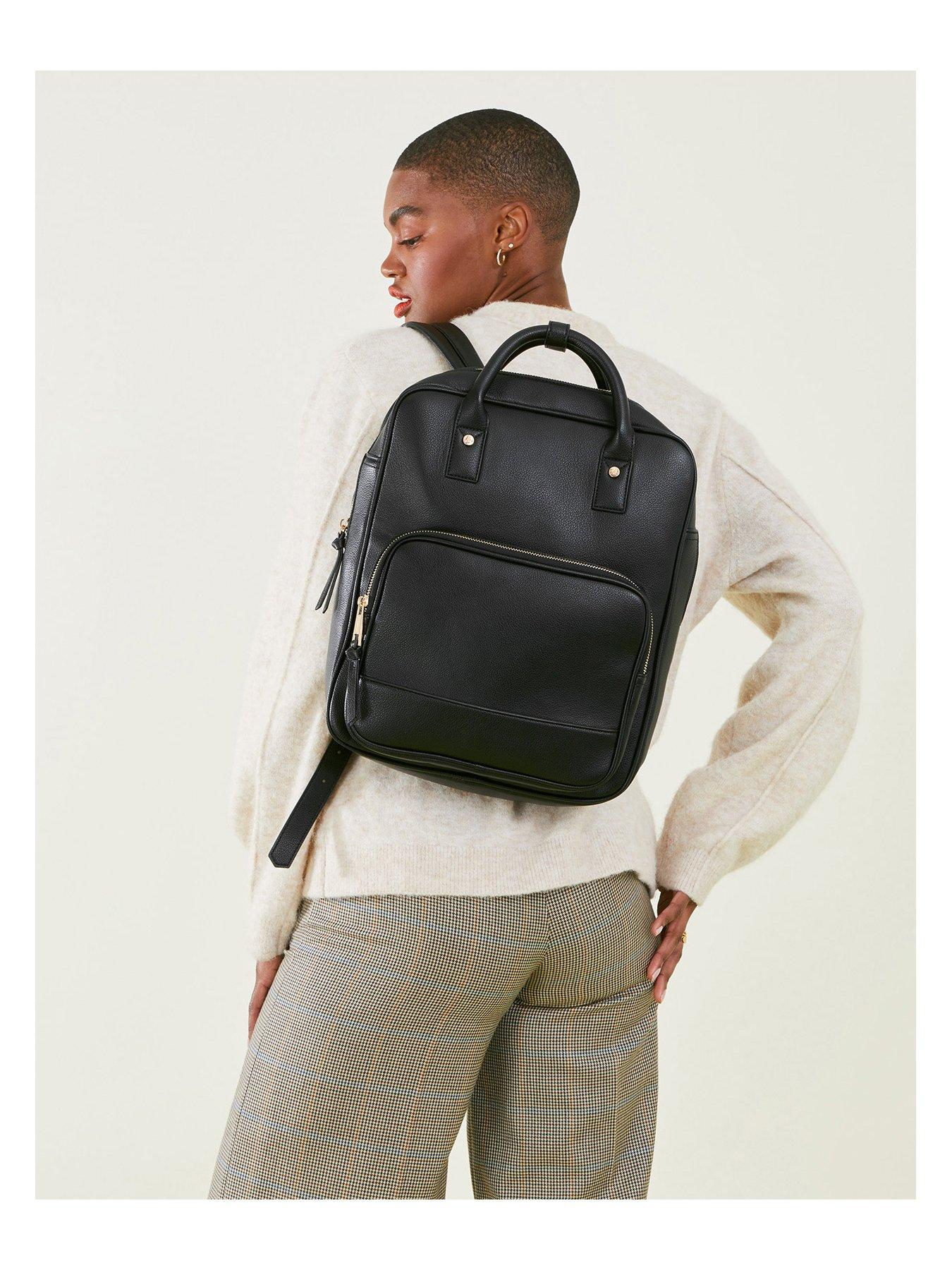 Accessorize Pocket Top Handle BackpackAs suitable for early morning commutes as it is for holiday ventures, this bag does it all. Transitioning through the seasons with ease, its spacious interior includes several pockets and compartments to hold your laptop, purse and lanyard. Designed in faux-leather, wear it as a rucksack with the adjustable straps or in-hand for easy access. Fits a 12x8 in laptop.