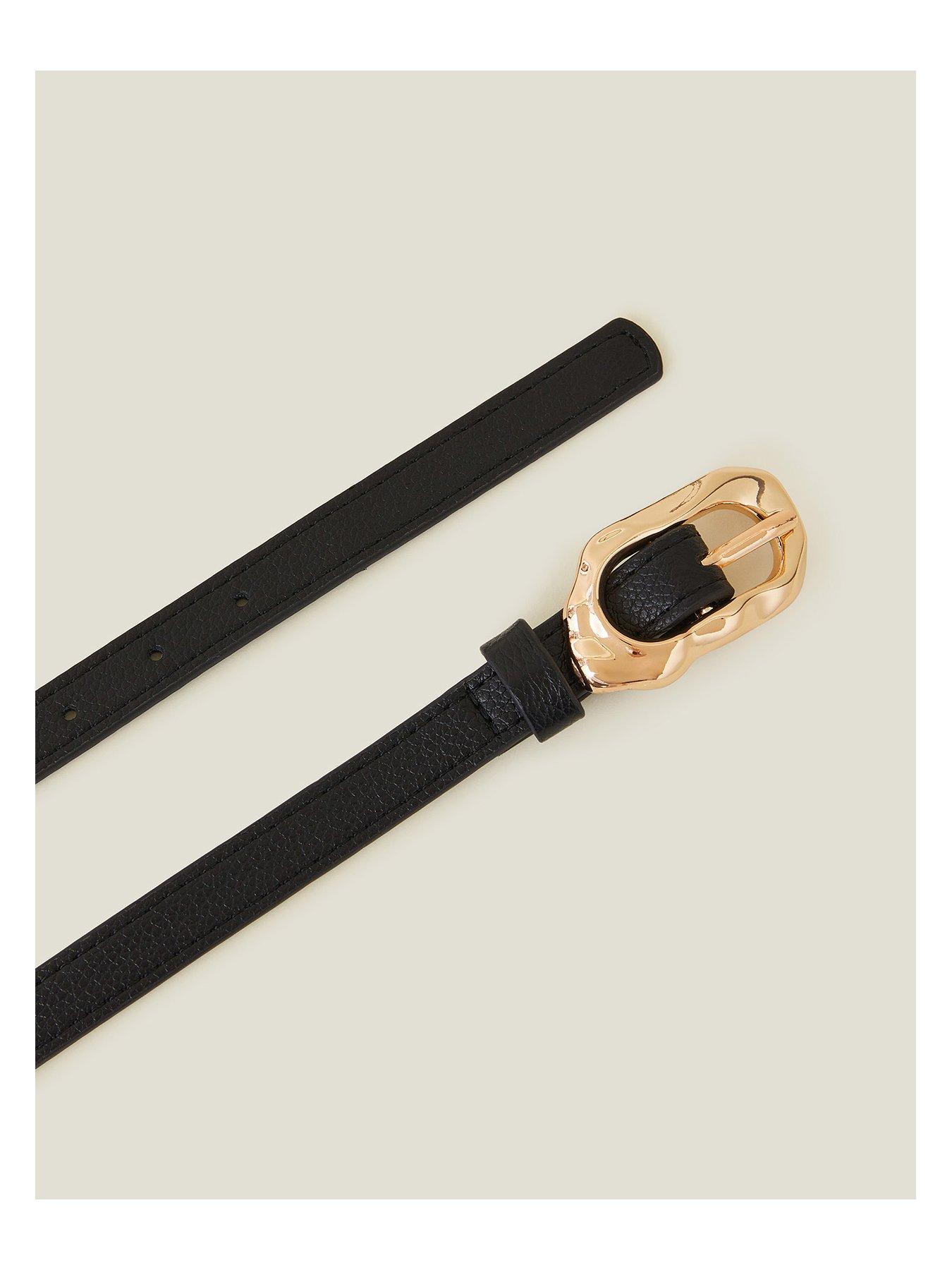 Accessorize Skinny Buckle BeltChange it up to match your 'fit with our reversible style. Keep it chic with an all black belt, designed with a molten buckle. The belt is finished with gold tone details for a classic finish.About the brand: Accessorize creates playful, personality-driven pieces that complete every outfit. Known for bright colour, bold print and crafted details, its collections make everyday looks feel more individual. The brand delivers finishing touches that balance function with creativity. |