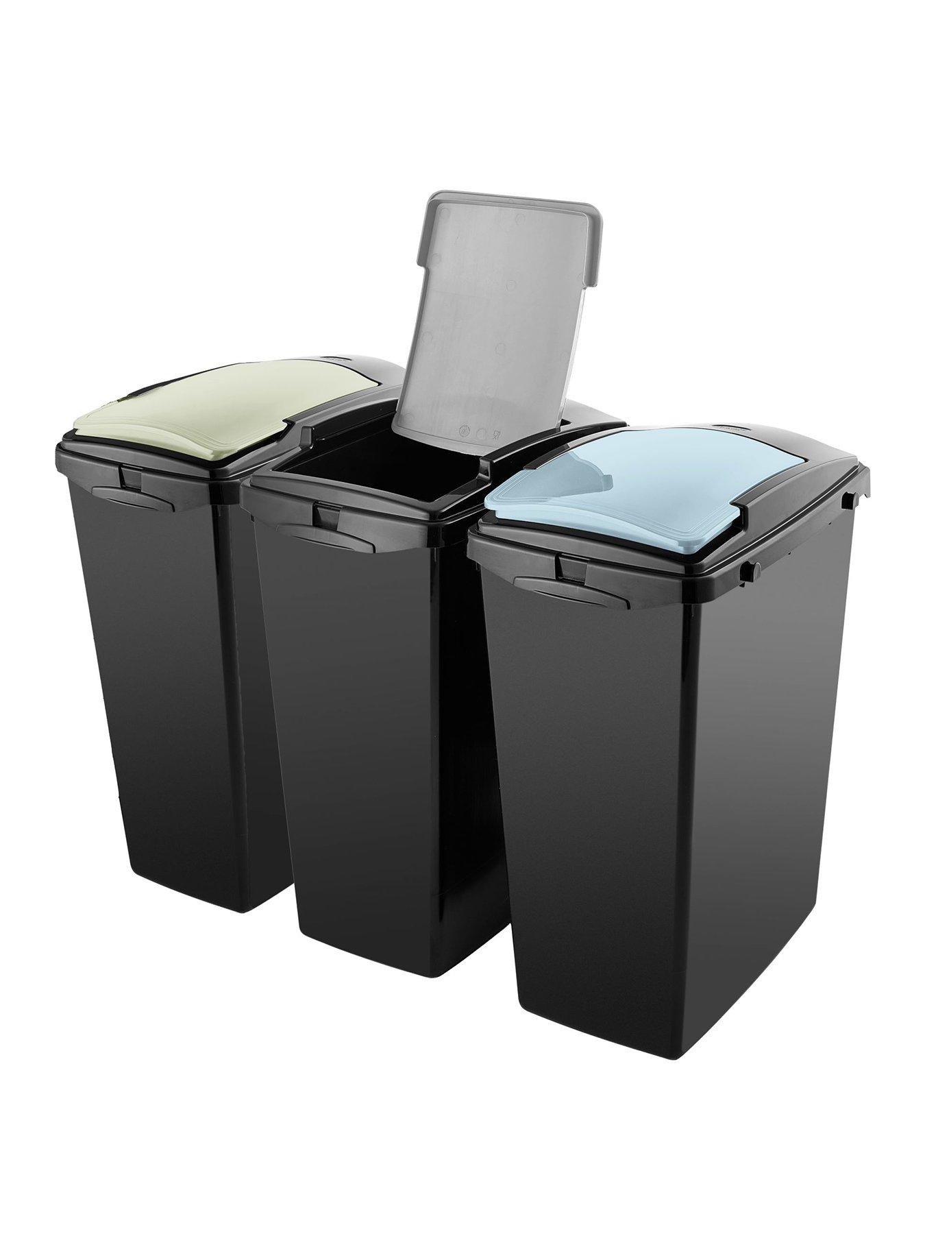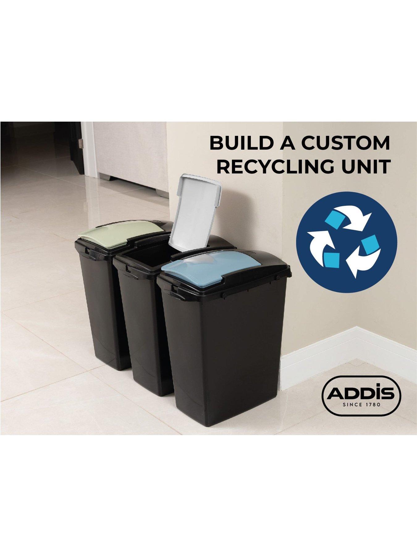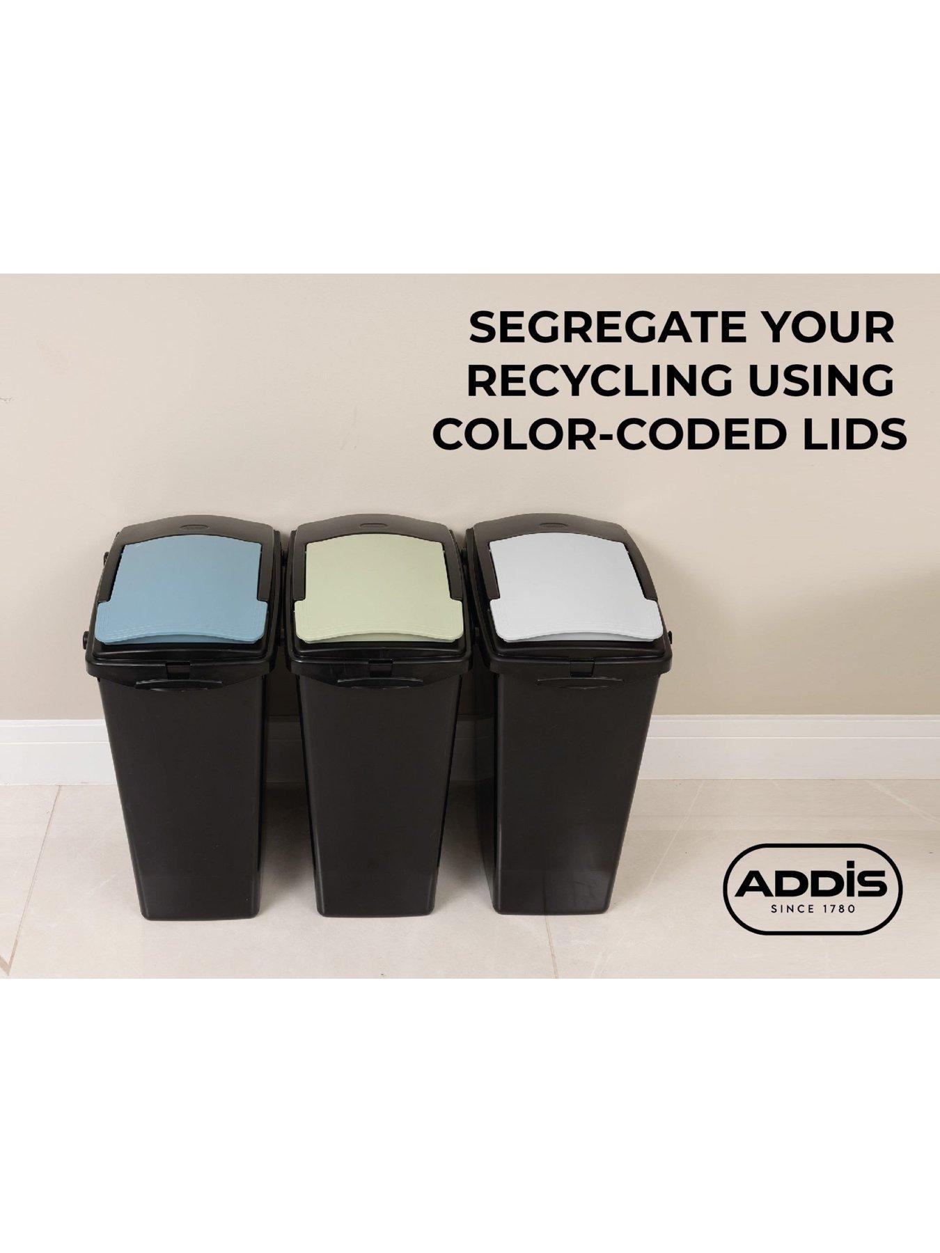 Addis Set of 3 40ltr Recycling Bins - Green, Blue & GreyAddis Recycling 40 litre waste kitchen plastic bins, Set of 3, modular system with lift lids, Black with delicate Sage Green, Air Blue and Soft Grey