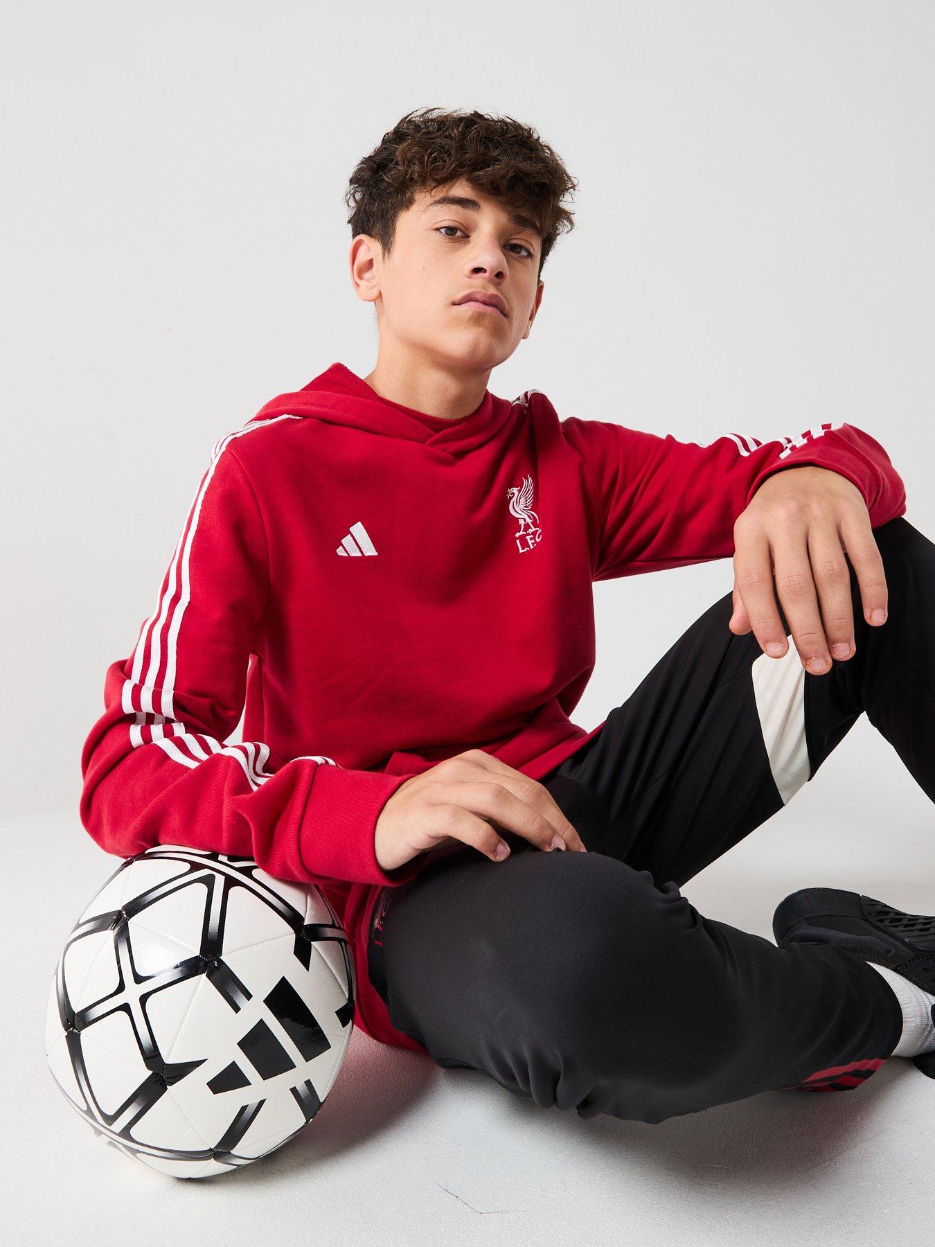 adidas Liverpool DNA Junior Hoody -RedShare your Liverpool FC pride in casual comfort. This juniors hoodie from adidas is made from soft cotton-blend French terry fabric that keeps you cosy in your colours. An embroidered club crest on the chest leaves no doubt where your football allegiances lie.