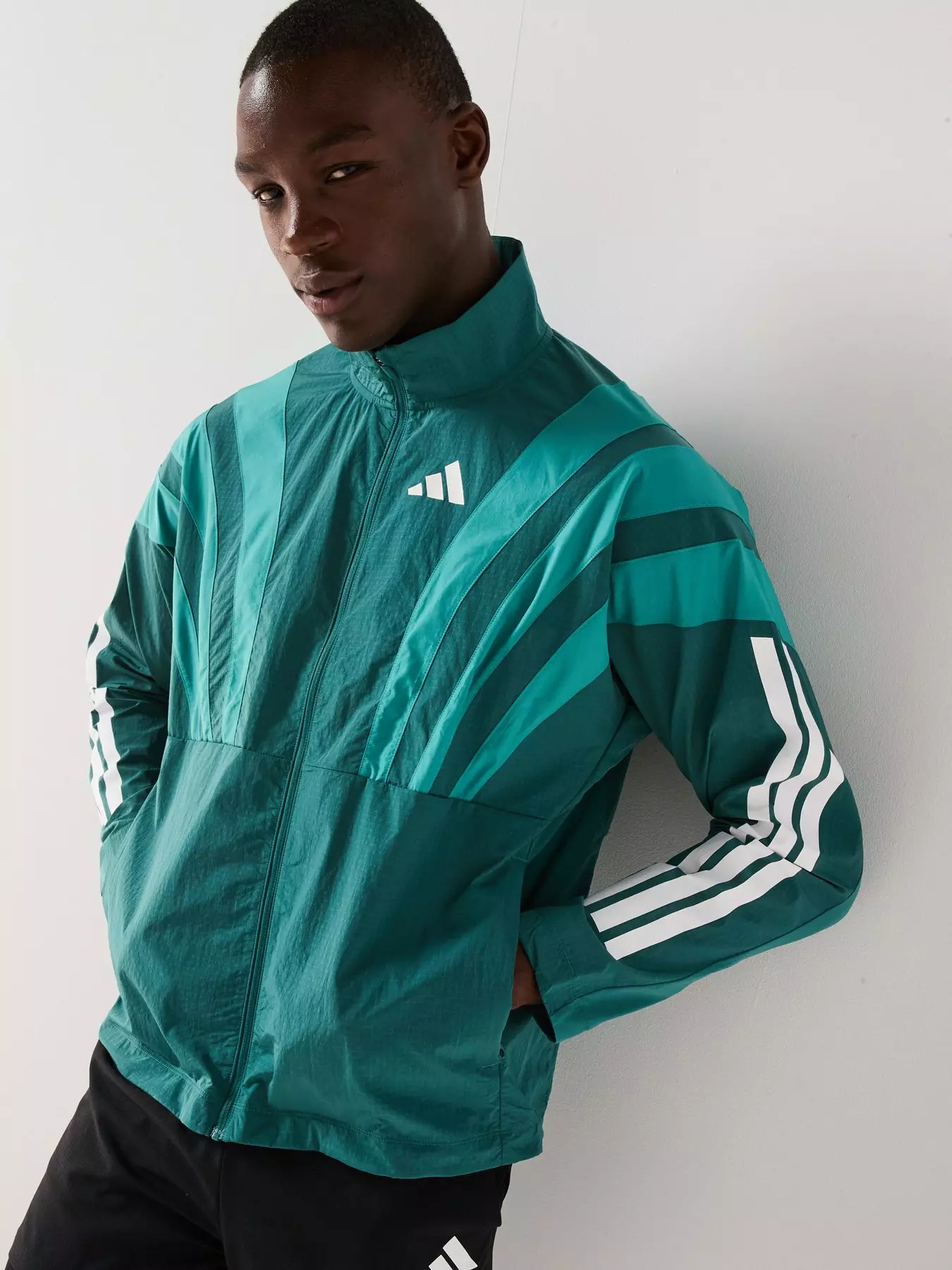 - Channel the spirit of the past while running in the present in this adidas Adizero running jacket. Lightweight ripstop fabric with underarm vent panels offers versatile performance for warm-ups and cool-downs. Reflective details add low-light visibility and a durable water-repellent treatment resists damp conditions.