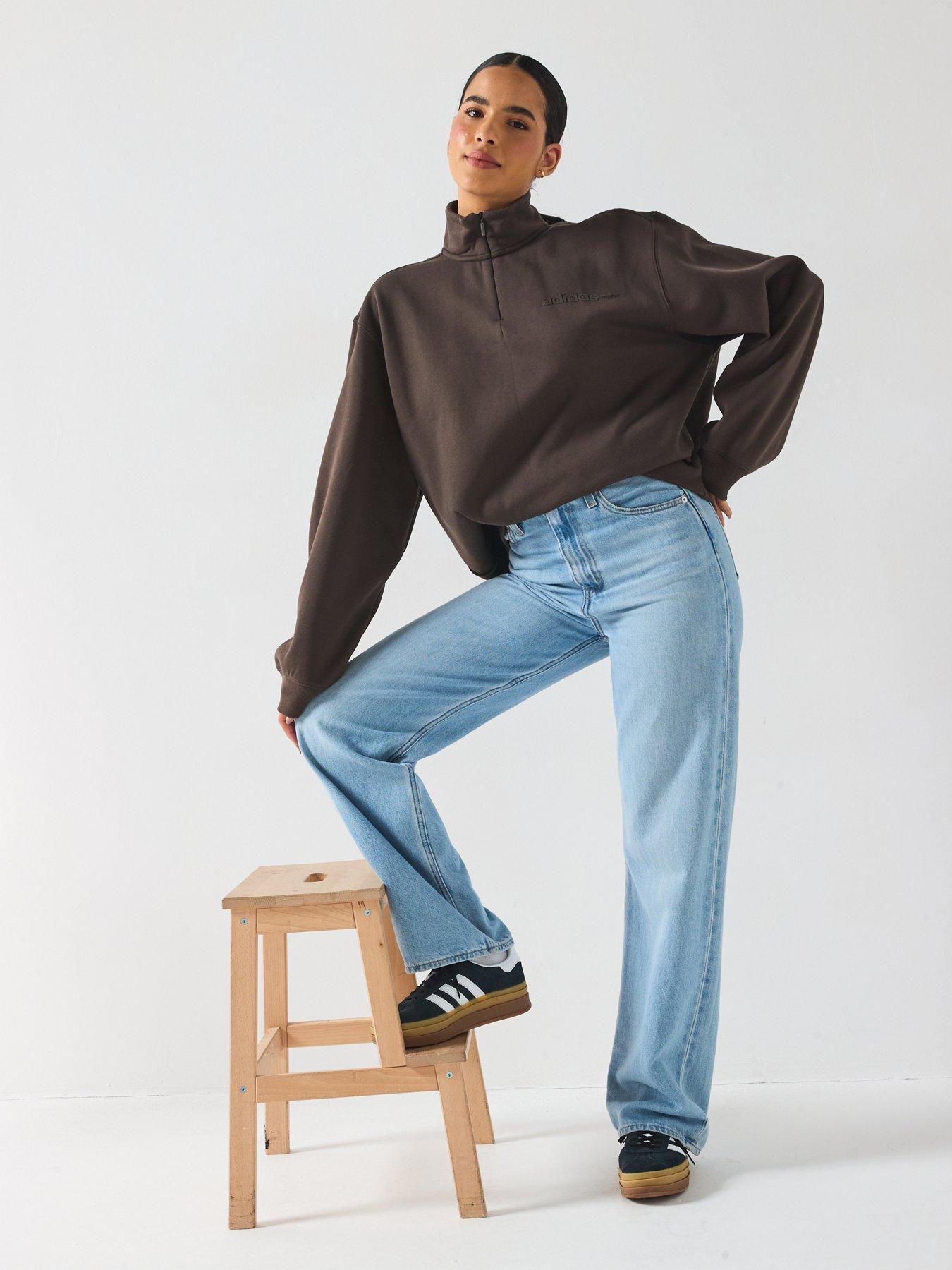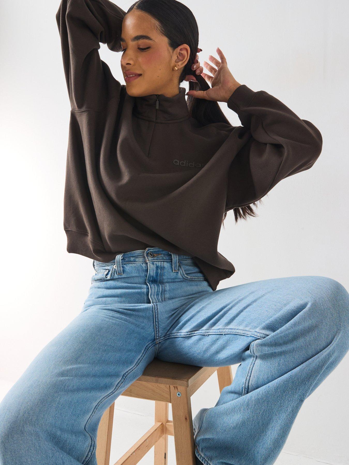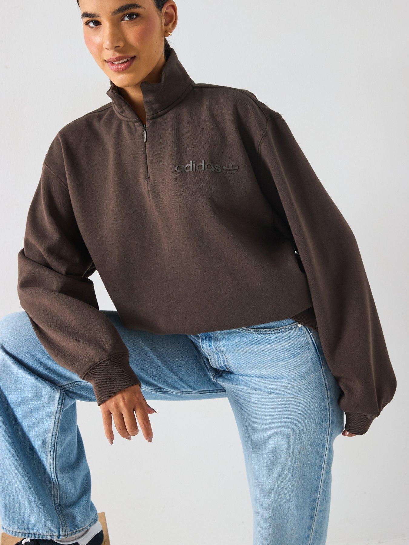 adidas Originals Women's Essential Linear Quarter ZipMaximum comfort meets minimalist style in this adidas sweatshirt. An understated linear logo on the chest shows your love for the brand, while the quarter-zip design makes it easy to adjust your look and ventilation. Cut in an oversized fit, this top layers well over a tee or tank and pairs perfectly with your favourite joggers or jeans for a casual vibe.