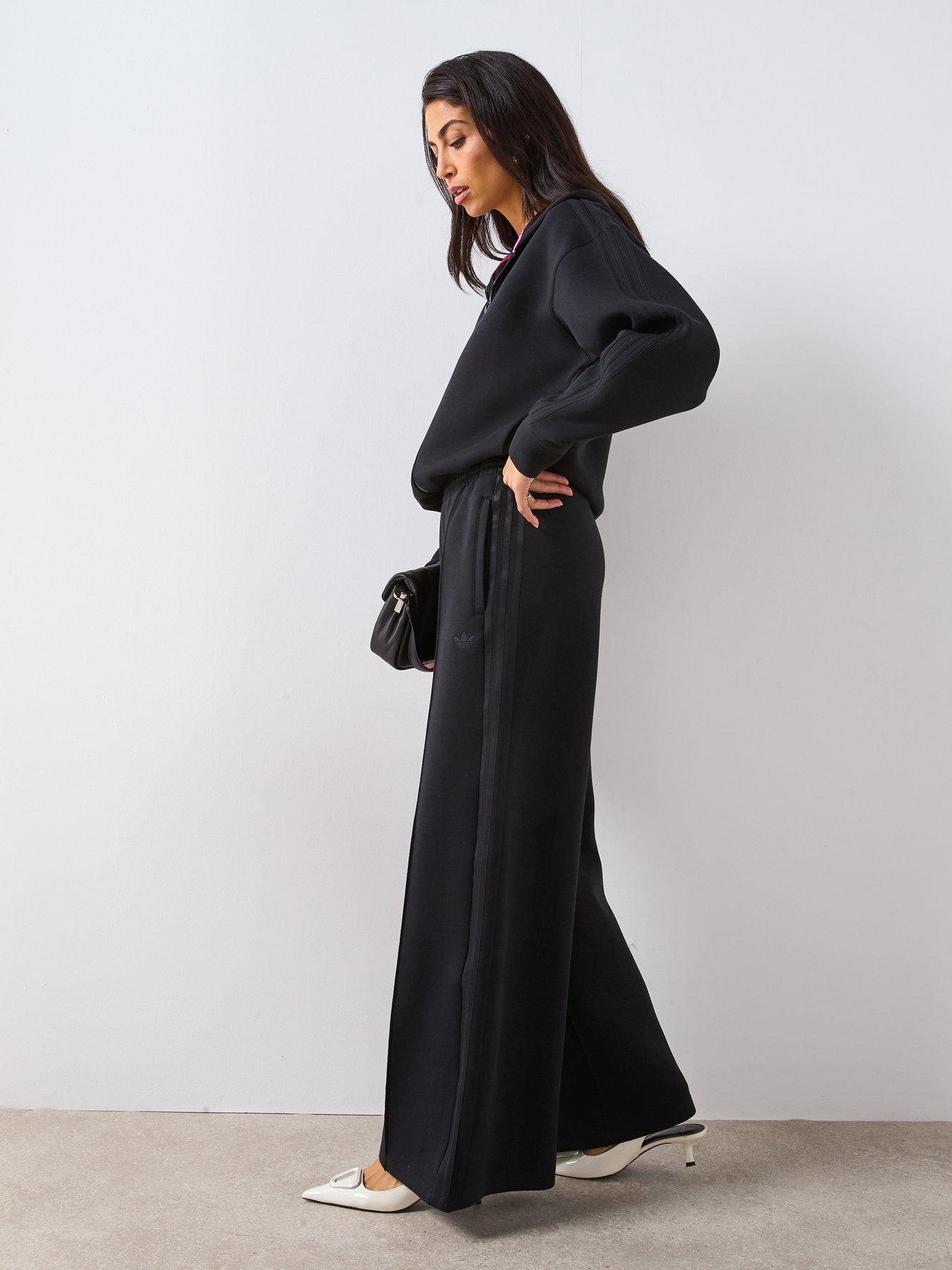 adidas Originals Women's Three Stripe Pants - BlackInspired by the past but made for today, these adidas track pants celebrate the power of heritage style. The loose shape gives them a casual look and feel, while the classic spacer fabric adds depth and comfort. 3-Stripes down the sides pay homage to sporty DNA. Pair them with a hoodie for a coordinated outfit or mix and match to make them your own.