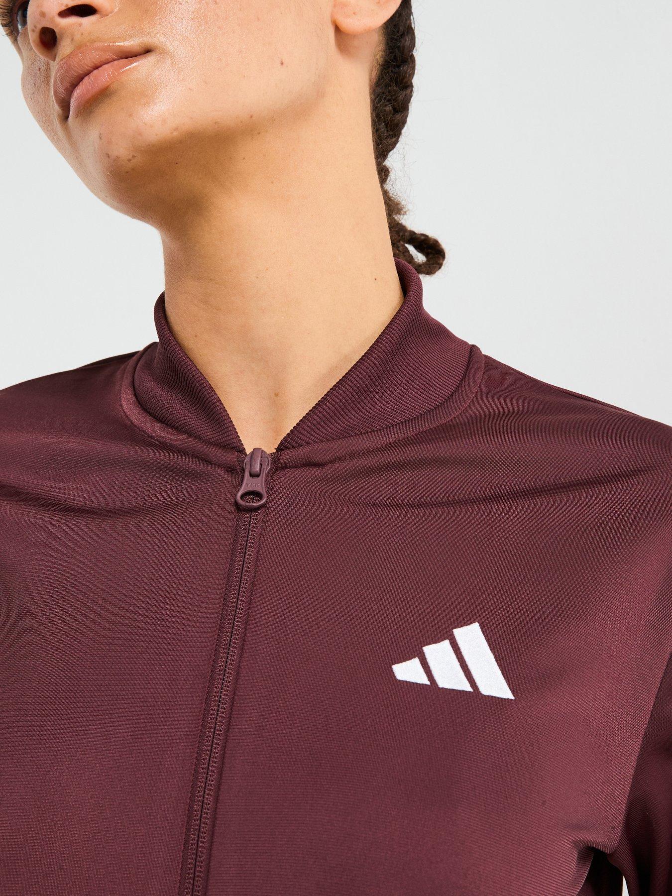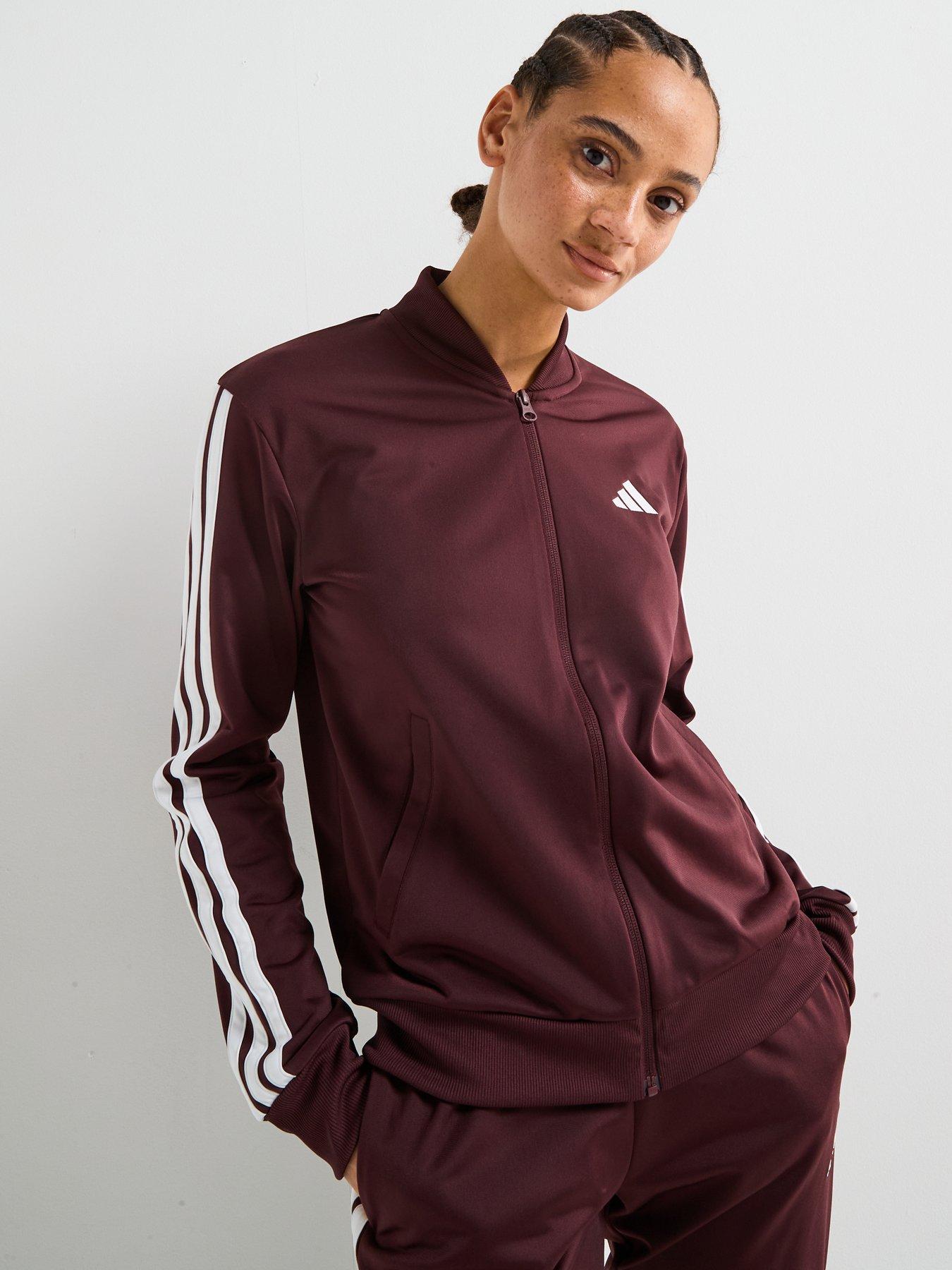 adidas Sportswear Womens Essentials 3-stripes Tracksuit - RedThis polyester tracksuit is a regular fit with adidas 3-Stripes down both the sleeves and legs. The jacket has a full zip up the front with a ribbed stand up collar and a side zip pocket. Pants have an elasticated waist with a drawcord and also have side pockets.