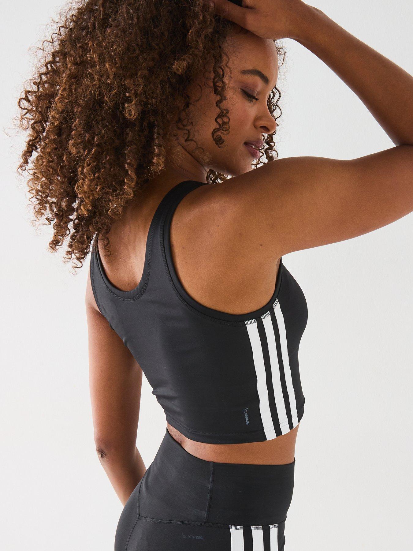 adidas Womens Train Essential 3 Stripe Crop TankSize & Fit