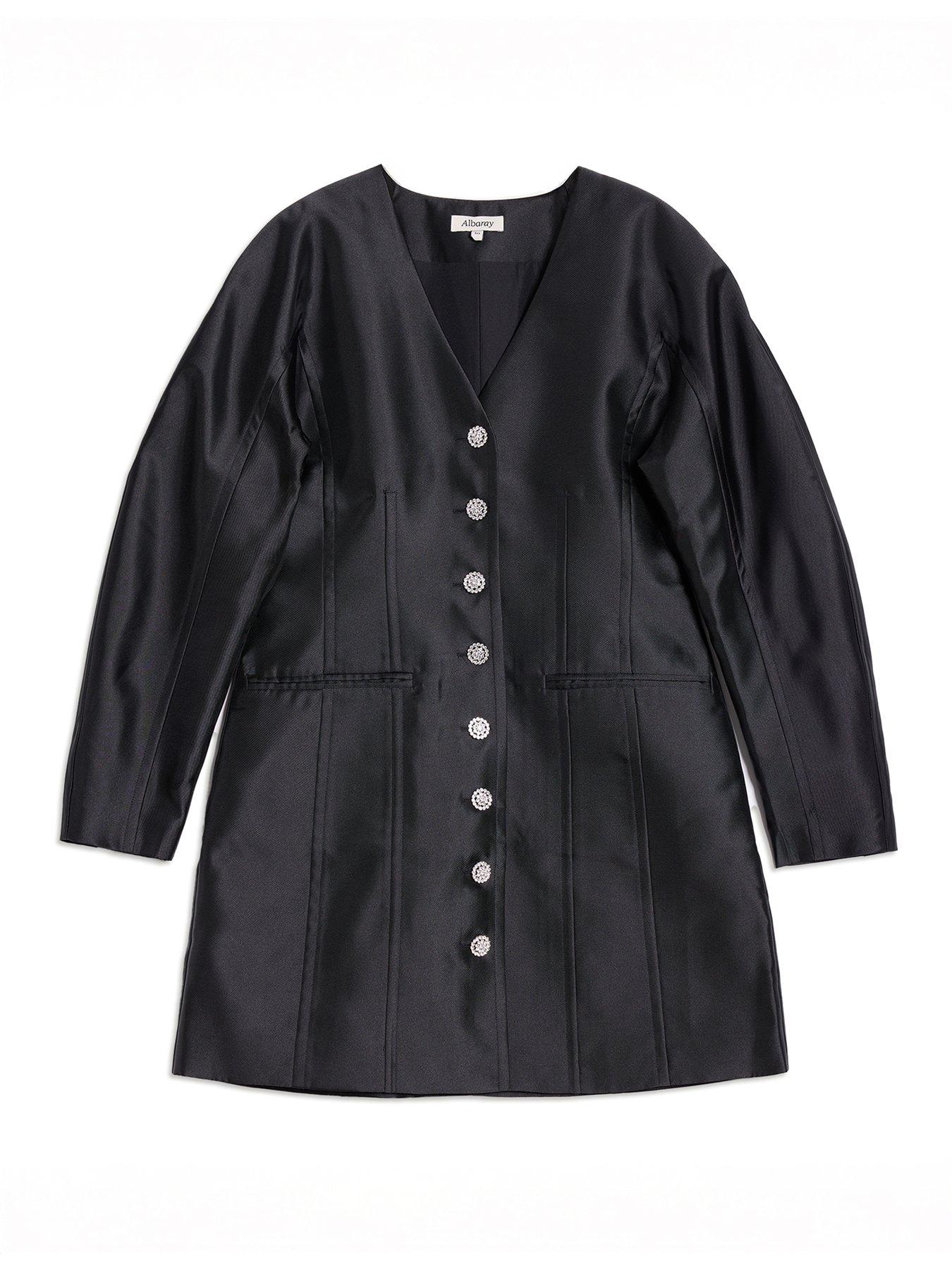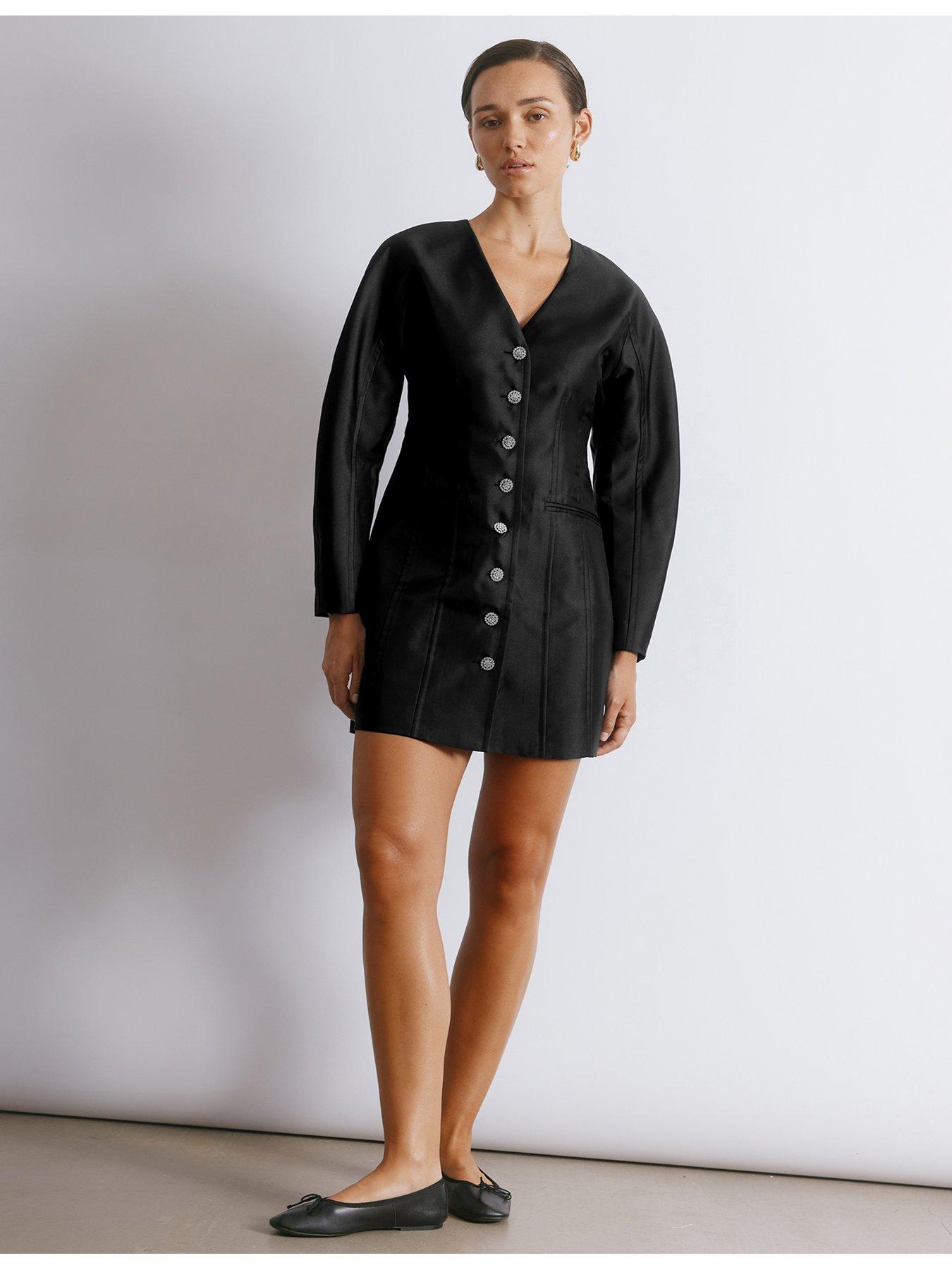 Albaray Cocoon Sleeve Taffeta DressEmbodying minimalism with maximum impact, this dress is a contemporary wardrobe addition. Constructed from a crisp taffeta, the fitted silhouette is defined by the voluminous cocoon sleeves and adorned with crystal flower buttons.