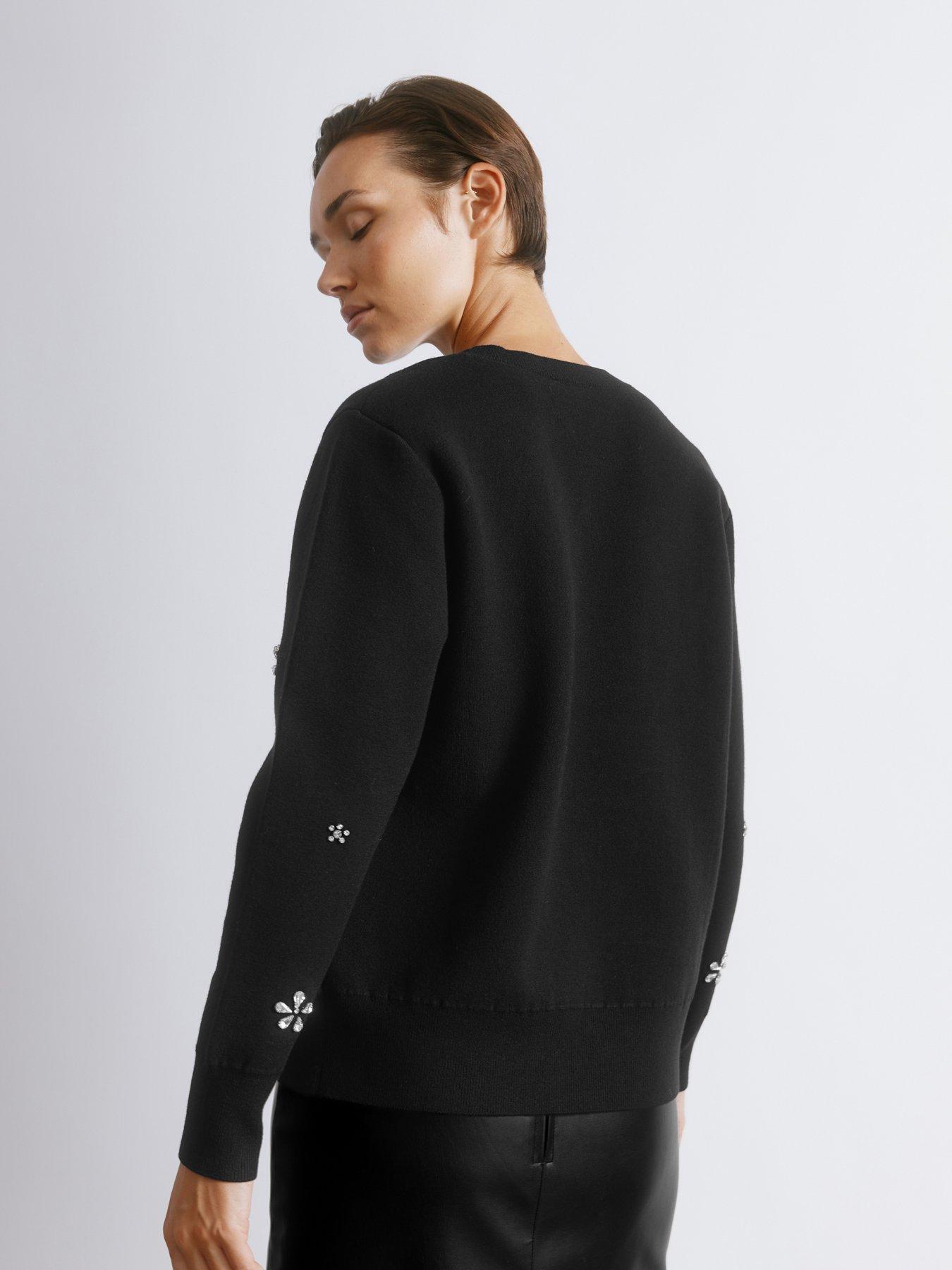Albaray Crystal JumperElevate your wardrobe with this sleek black knitted jumper, featuring a claw diamante design that adds a touch of sparkle and sophistication. Dress up with tailoring or down with denim.