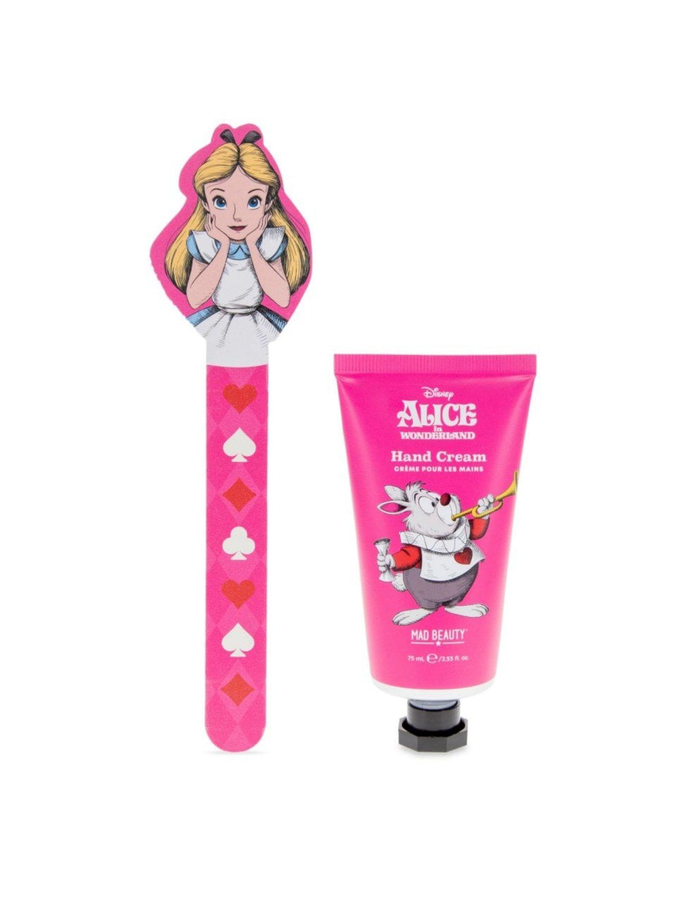 Alice in Wonderland Lip Balm and Nail Care BundleDisney Alice in Wonderland Lip Balm Duo:Show your lips some love with this fun duo of Alice inspired lip balms, choose from a playing card tin or a moulded top hat. The moisturising formulas are fragranced with raspberry and vanilla to help leave lips feeling smooth and hydrated. Alice in Wonderland Nail Care Duo: Give your hands a magical treat with this shea butter-infused hand cream and nail file duo. Scented with raspberry and honeydew, hands will be left soft and fragrant, whilst nails can be kept nails perfectly neat for any whimsical adventure!