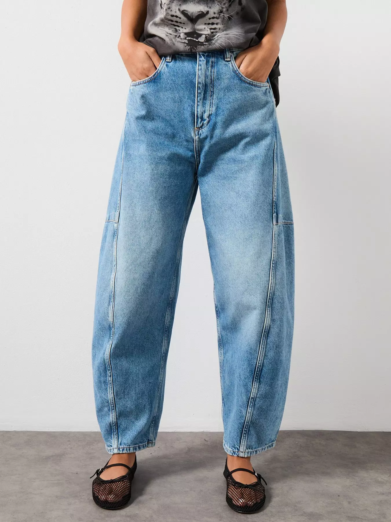 - 90's voluminous barrel-leg shape offers a standout look with a laidback feel