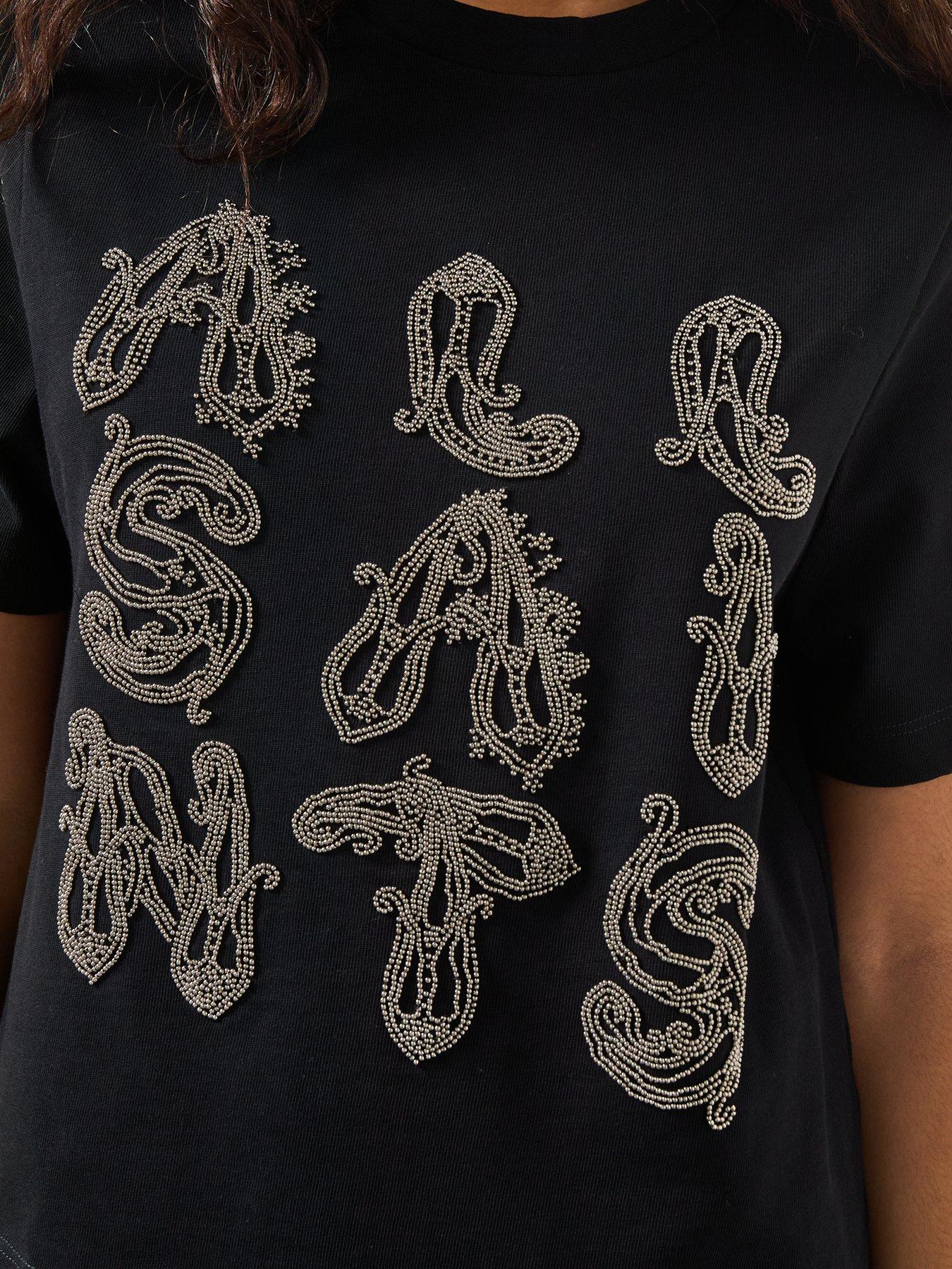 • The AllSaints Ella Lisa Embellished T-Shirt redefines laid-back luxury, pairing a relaxed silhouette with intricate embellishment for an elevated take on everyday style. Perfect from day to night.