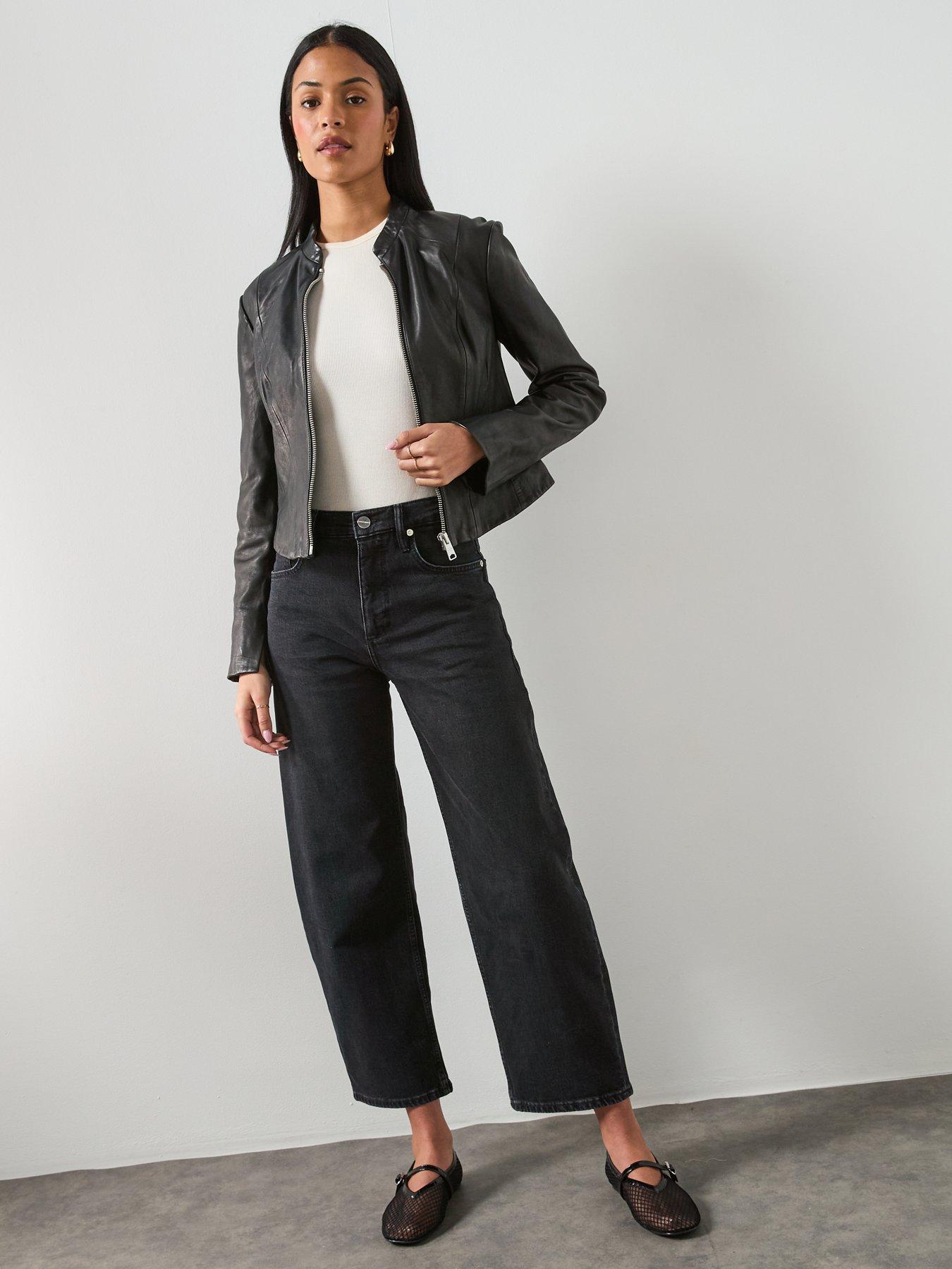 - Minimal, sharp and unmistakably AllSaints, the Sadler Leather Jacket is a refined take on modern outerwear. Crafted from premium washed leather, this slim-fit style highlights the natural depth and texture of the material for a worn-in yet elevated finish. A structured stand collar and sculpting darted seams define the silhouette, while subtle slit cuffs add contemporary edge. Finished with signature dull metal hardware, it’s a timeless investment piece that works effortlessly with dresses or denim