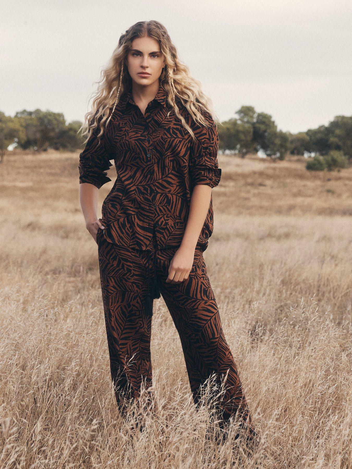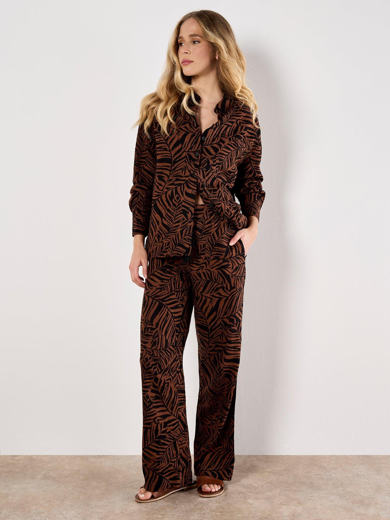 Apricot Bold Leaf Abstract TrouserCo-ord with WI6T5. Boasting a bold leaf print, these linen blend trousers are designed for warm days. In a wide-leg cut, theyre finished with an elastic waist with a drawstring for the perfect fit. Brown Leaf print Wide-leg Linen blend Elastic waist with drawstring TrousersAbout the brand: Apricot is celebrated for vibrant prints, flattering shapes and easy everyday wear. Drawing on global influences and artisan details, the brand delivers feminine, modern collections. Each piece is designed to bring personality to daily dressing. |