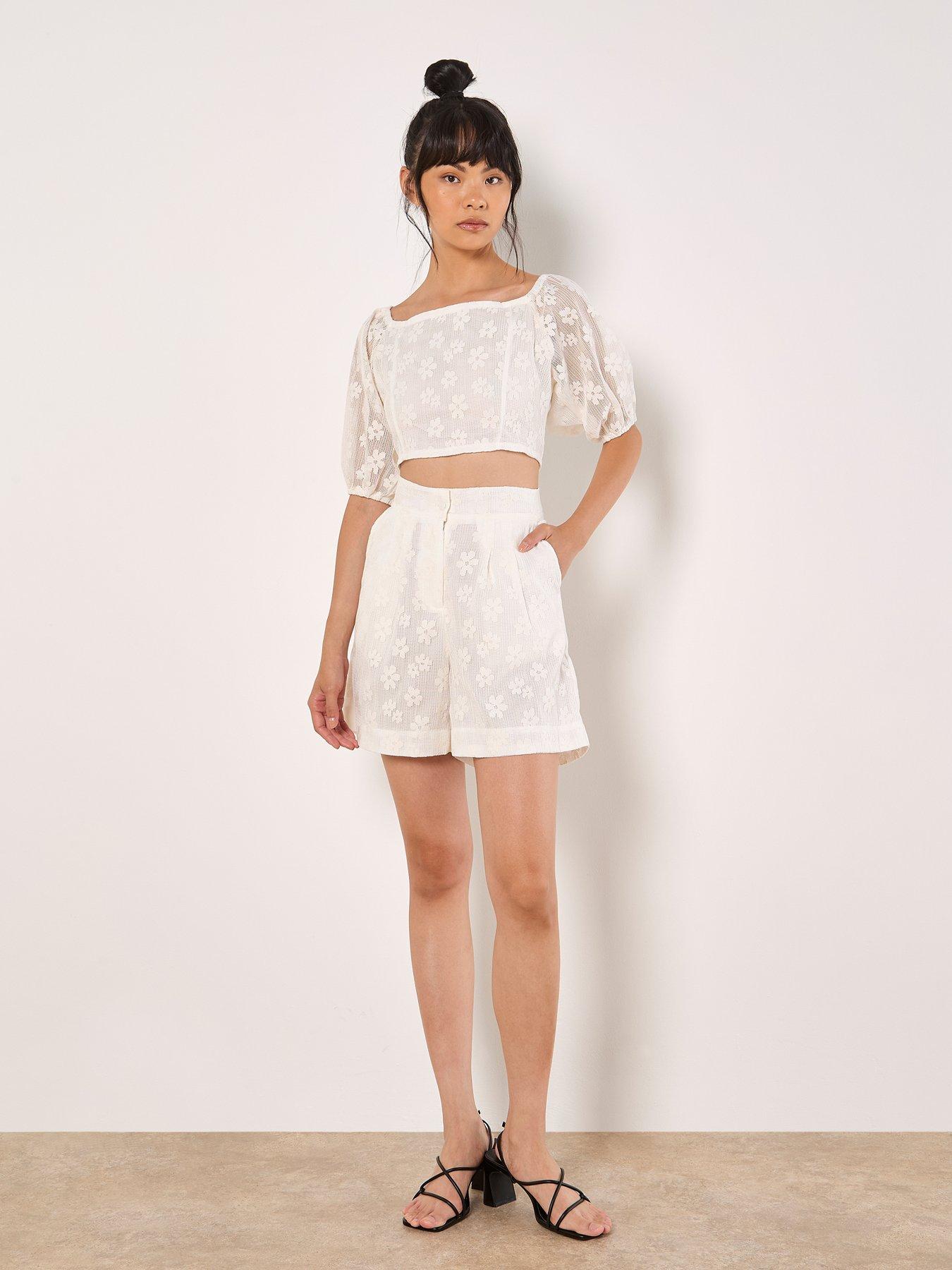 Apricot Daisy Mesh Cropped TopCo-ord with WI6SK. Crafted from floral mesh, this crop top is the perfect pick for warm days. It features a smocked back for a comfortable fit, a square neck and puff sleeves. Cream Textured mesh with floral design Square neck Puff sleeves Smocked back Cropped Matching shorts Top Length: Approx. 35cmAbout the brand: Apricot is celebrated for vibrant prints, flattering shapes and easy everyday wear. Drawing on global influences and artisan details, the brand delivers feminine, modern collections. Each piece is designed to bring personality to daily dressing. |