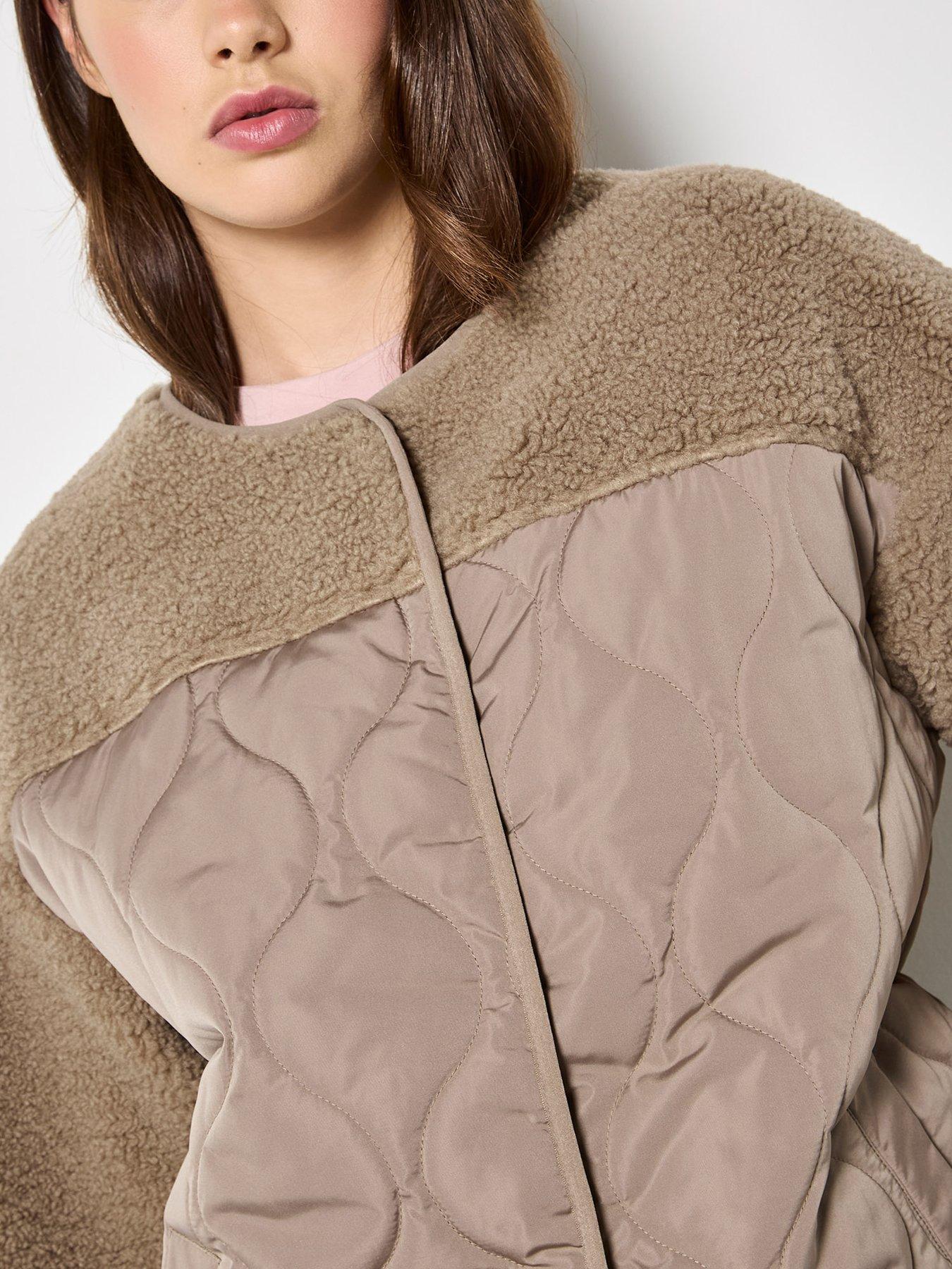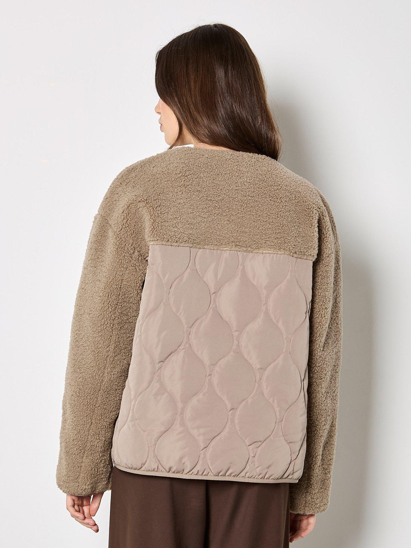 Apricot Contrast Borg Quilted JacketBeat the chill in comfort and style with this versatile jacket. Designed with a soft borg yoke and sleeves, it's lined for comfort and features a contrast quilted body, a snap-button and zip fastening, and practical side seam pockets.Cosy and casual, layer this quilted jacket over your everyday separates.