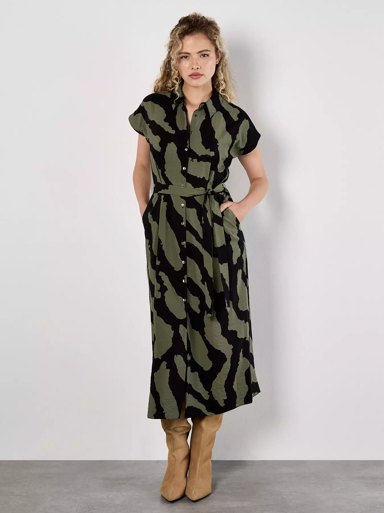 ApricotPainterly Zebra Print Shirt Dress - Khaki