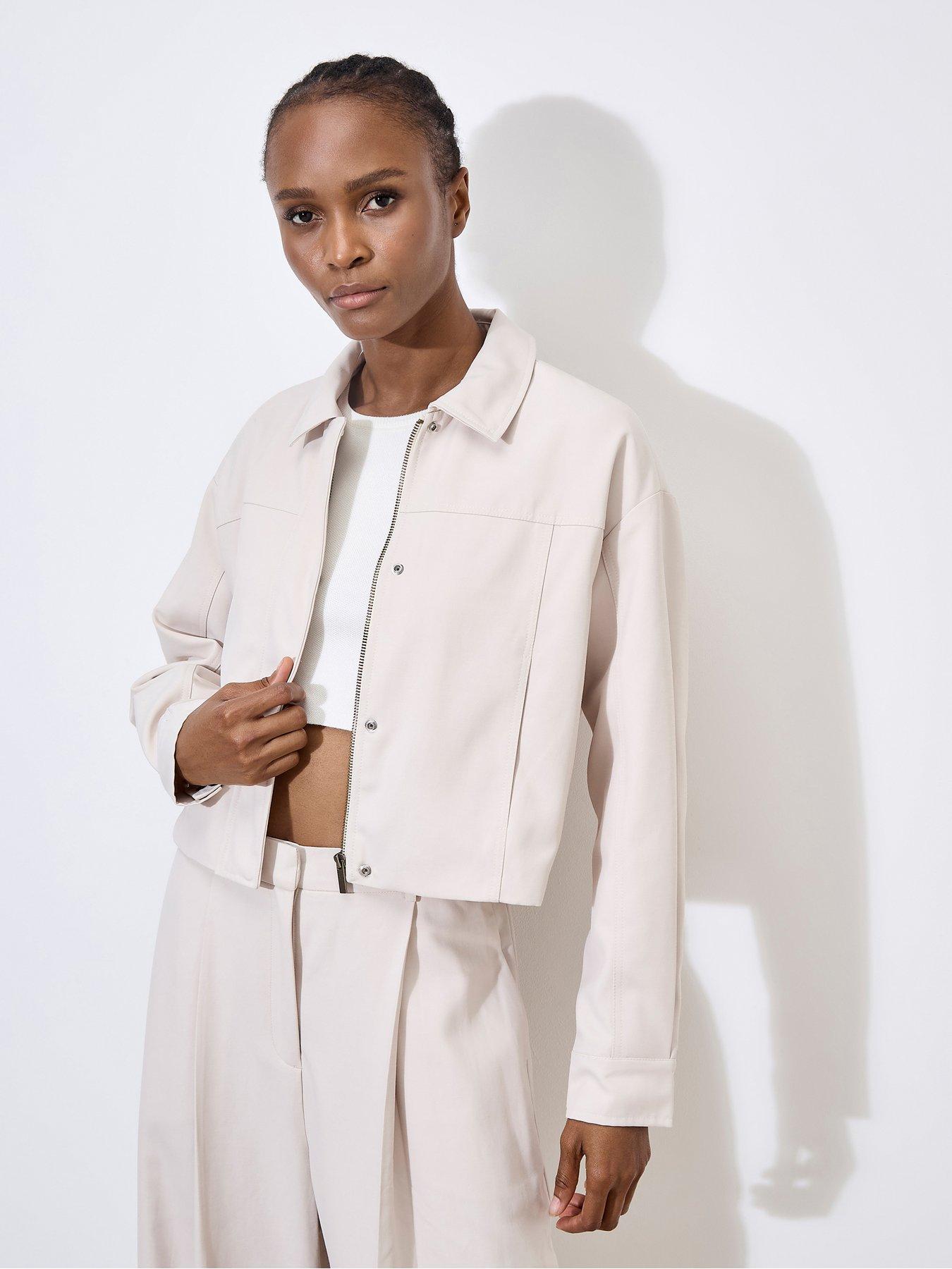 Apricot Soft Tailored Cropped Jacket - StoneCo-ord with WGWR8. Transition from desk to off-duty in timeless style with this soft jacket. In a cropped length, it features a flattering fit, a collared neck, and a zip fastening. Its finished with seam seam pockets. Stone Cropped length Collar Zip fastening One snap button fastening Side seam pockets Matching trousers available Jacket Length: Approx. 49. 4cm Model wears size 8