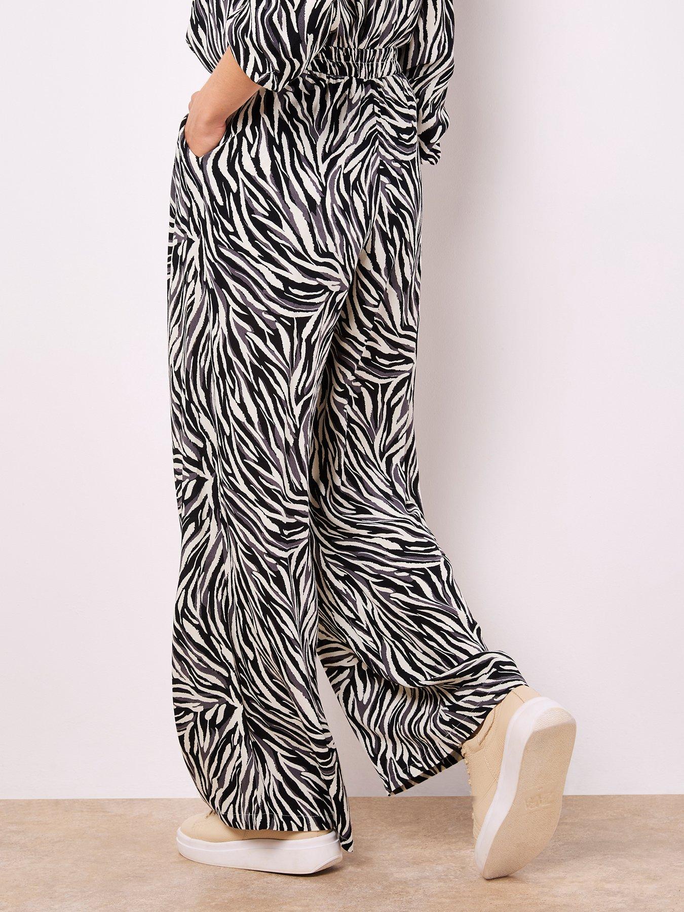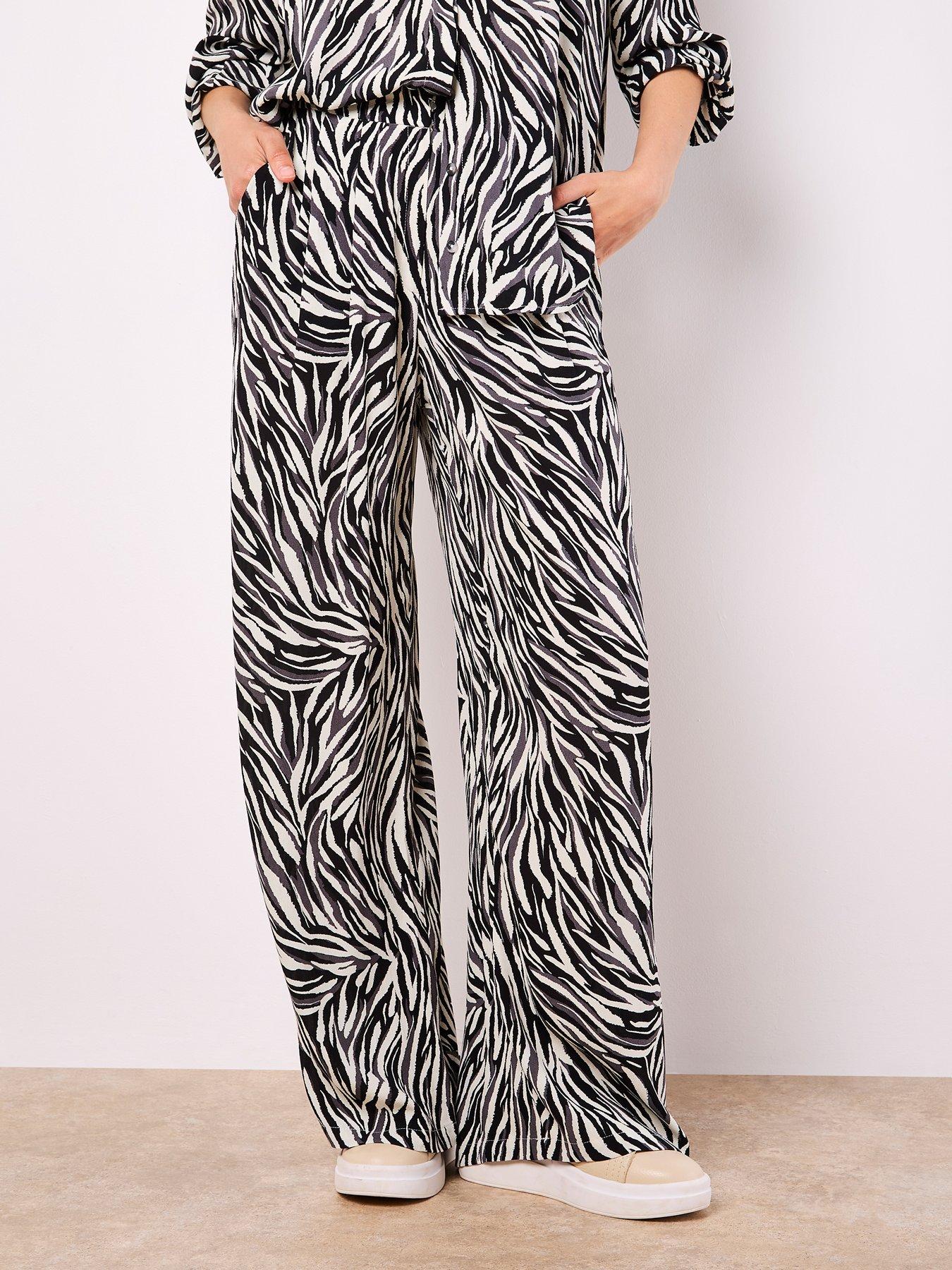 Apricot Zebra Wide Leg Printed Trouser - StoneCo-ord with WFTAP. In a wide-leg cut, these trousers are a lightweight option for warm days. Boasting a bold zebra print, they feature an elastic panel at the waist for a comfortable fit, side seam pockets, plus a hook and zip fastening. Stone Zebra print Lightweight, woven, textured fabric Elastic panel at back of waist Side seam pockets Hook and zip fastening Wide leg Trousers Matching shirt available Inside leg length: Approx. 75. 5cm The model is wearing a XS/UK 8