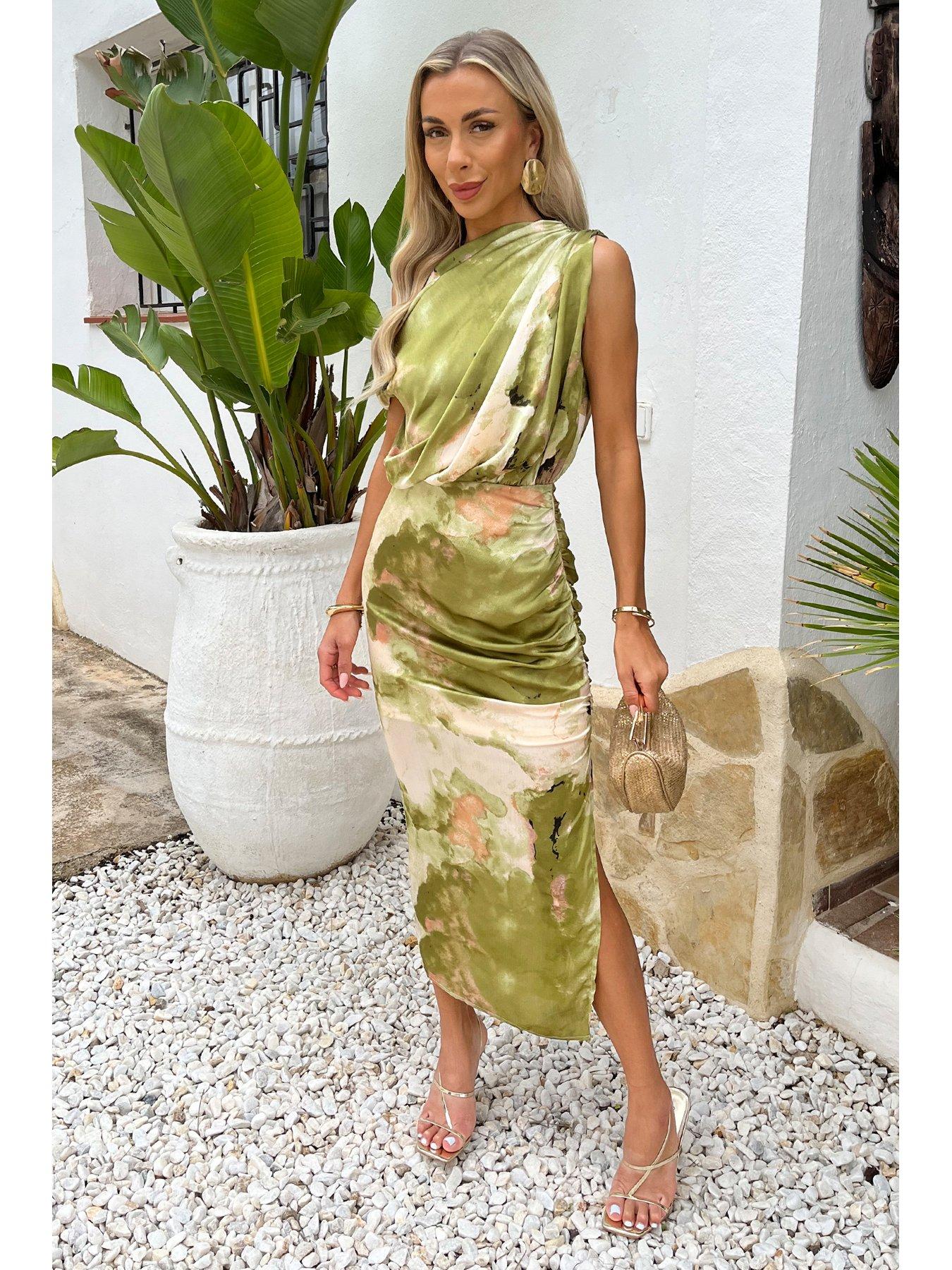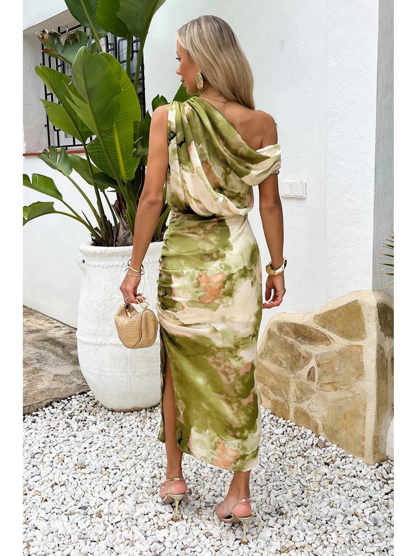 AX Paris Lime Marble Print Off The Shoulder Midi Dress