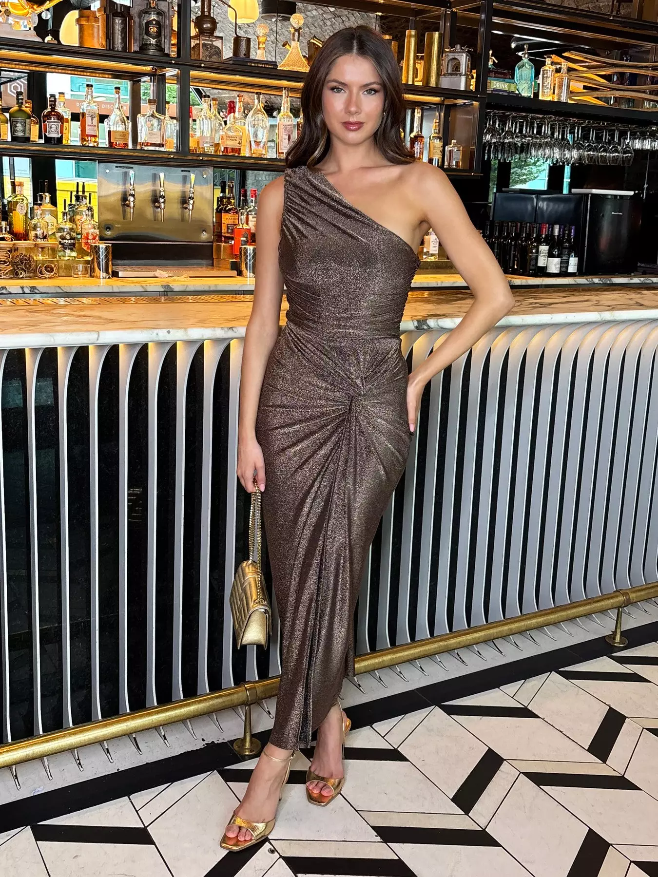AX ParisSparkle One Shoulder Knot Skirt Midi Dress - Brown
