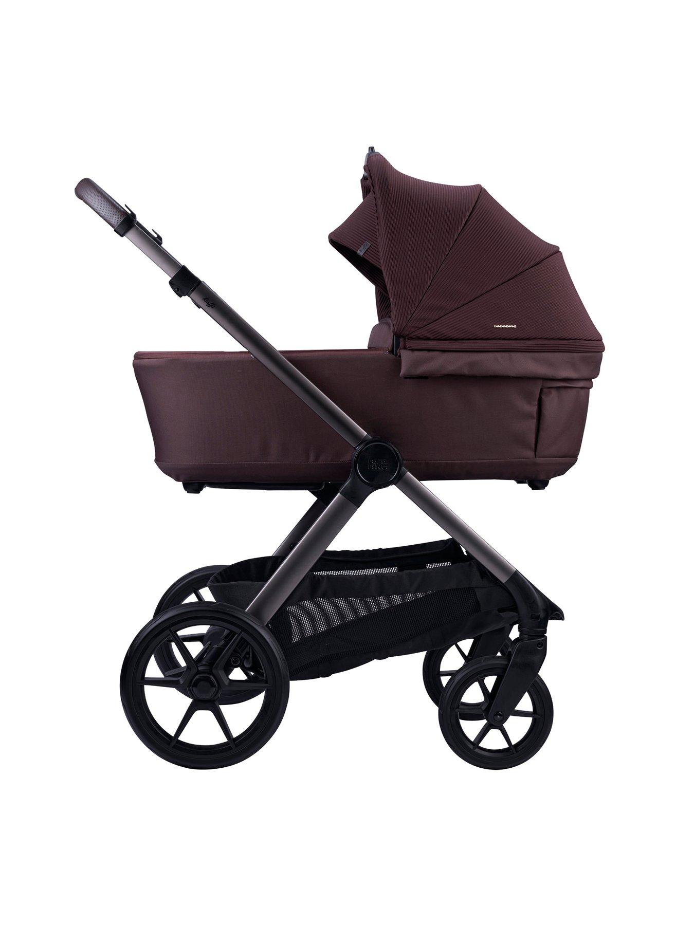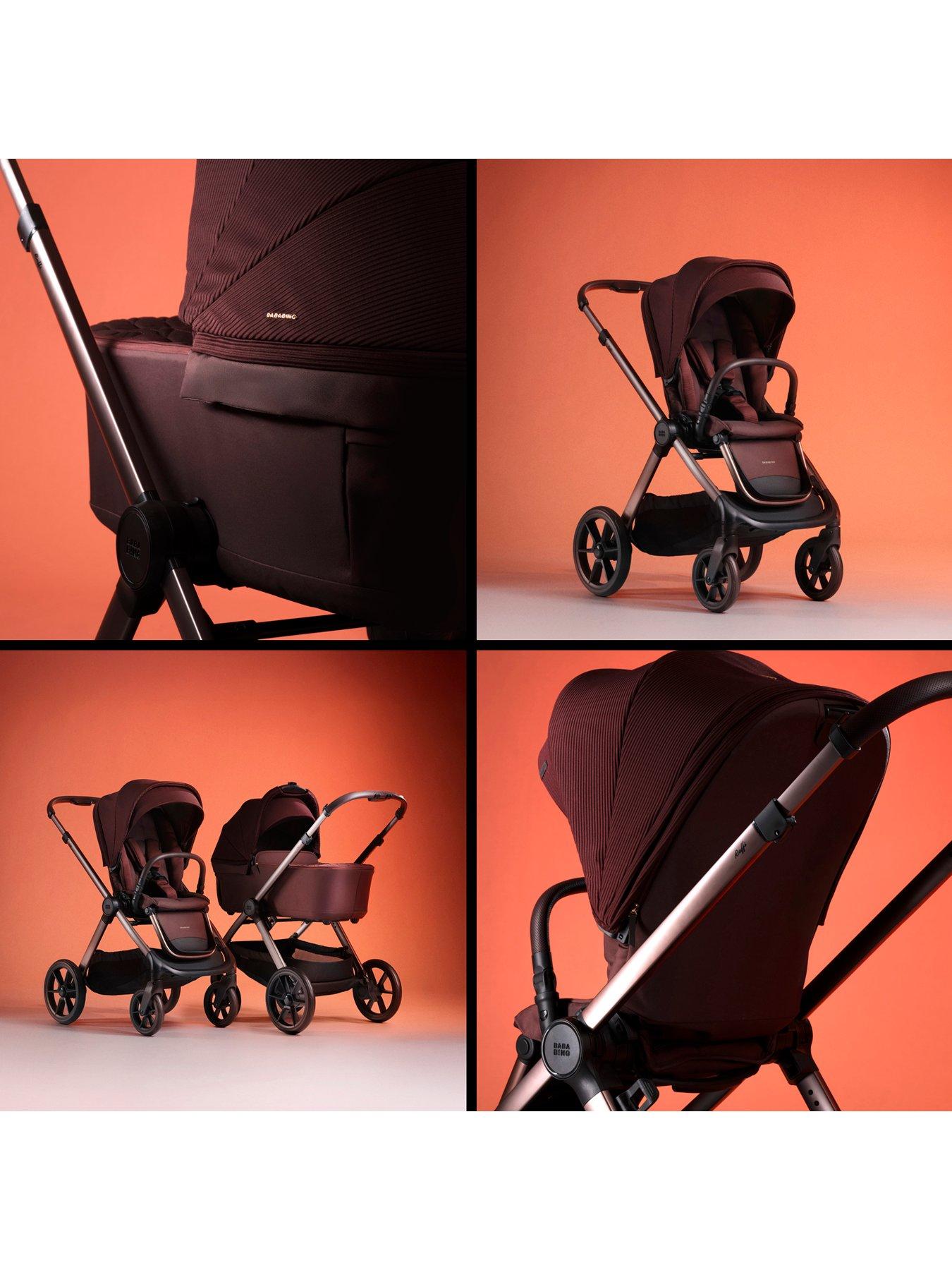 BabaBing! Raffi 3 in 1 Travel System - HeritageStylish and practical, the Raffi 2.0 has a sleek anodised chassis finish and geo-quilted carrycot cover. Packed with improved award-winning features, you'll love the one-handed auto-folding. The carry cot easily collapses flat with the press of a button, saving space in the car boot or at home. The Raffi 2.0 can be folded with the seat unit on in both world and parent-facing positions. Improved and softer all-around four-wheel suspension gives an even smoother ride, with improved rim and all-terrain wheels to take any bumpy road in its stride. So, you can go anywhere and everywhere with total ease. The anti-reflux carry cot has an adjustable back rest so baby can be inclined slightly. Extra ventilation in the carry cot is great for overnight sleeping or for warm days. The Raffi has an extra-large easy-access shopping basket, and the seat unit has an extendable hood feature for extra sun protection and shade. All fabrics can be machine-washed at 30 degrees, and it has a 5-point magnetic safety harness. The handle height is 94cm. 7-piece Raffi 2.0 bundle includes: Raffi seat unit Raffi chassis/frame Raffi carry cot Footmuff Rain cover Car seat adapters Carrycot risers