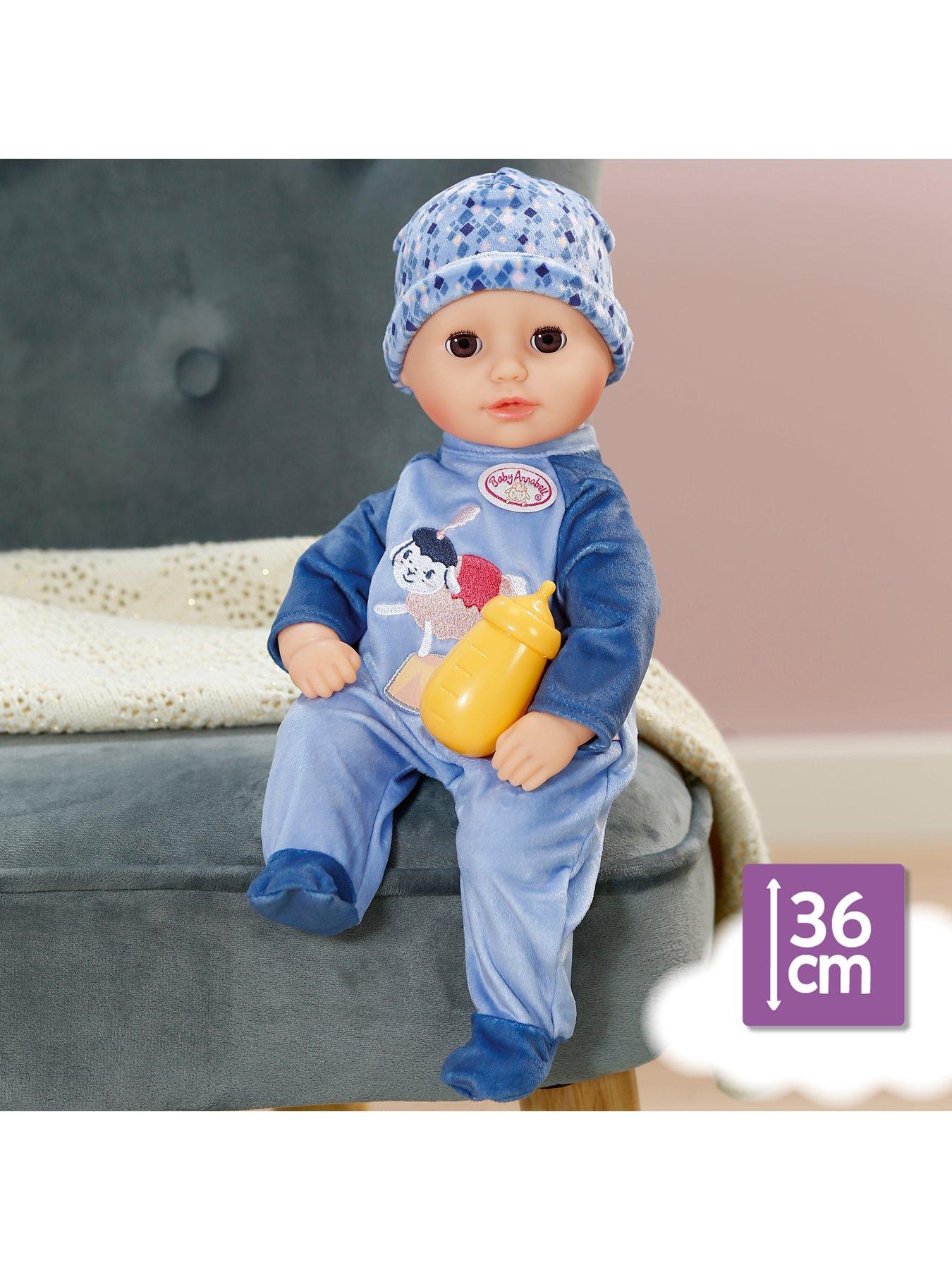 Baby Annabell Alex Doll 36cmBaby Annabell Alex is the sweetest little doll who supports nurturing play for children aged 1+. As the little brother of the original Baby Alexander 43cm doll, he encourages loving role play and supports emotional development.At 36cm in size, his soft snuggly body is great for lots of cuddles and soothing little ones, plus he is the ideal weight for toddlers to carry and play with. Alex comes with a miniature bottle for pretend feeding and he loves to snooze - when you lie him down his little eyes close. Dressed in a cosy hat and romper with Velcro fastening, little ones can easily change Alex's outfit throughout the day. Suitable for children aged 1+. 36cm, with sleeping eyes and cuddly body. Comes with romper, hat and bottle. Comes in 100% plastic free packaging Gently encourages children from the age of 1 to engage in nurturing role play and provides initial stimuli for developing a sense of empathy and responsibility.