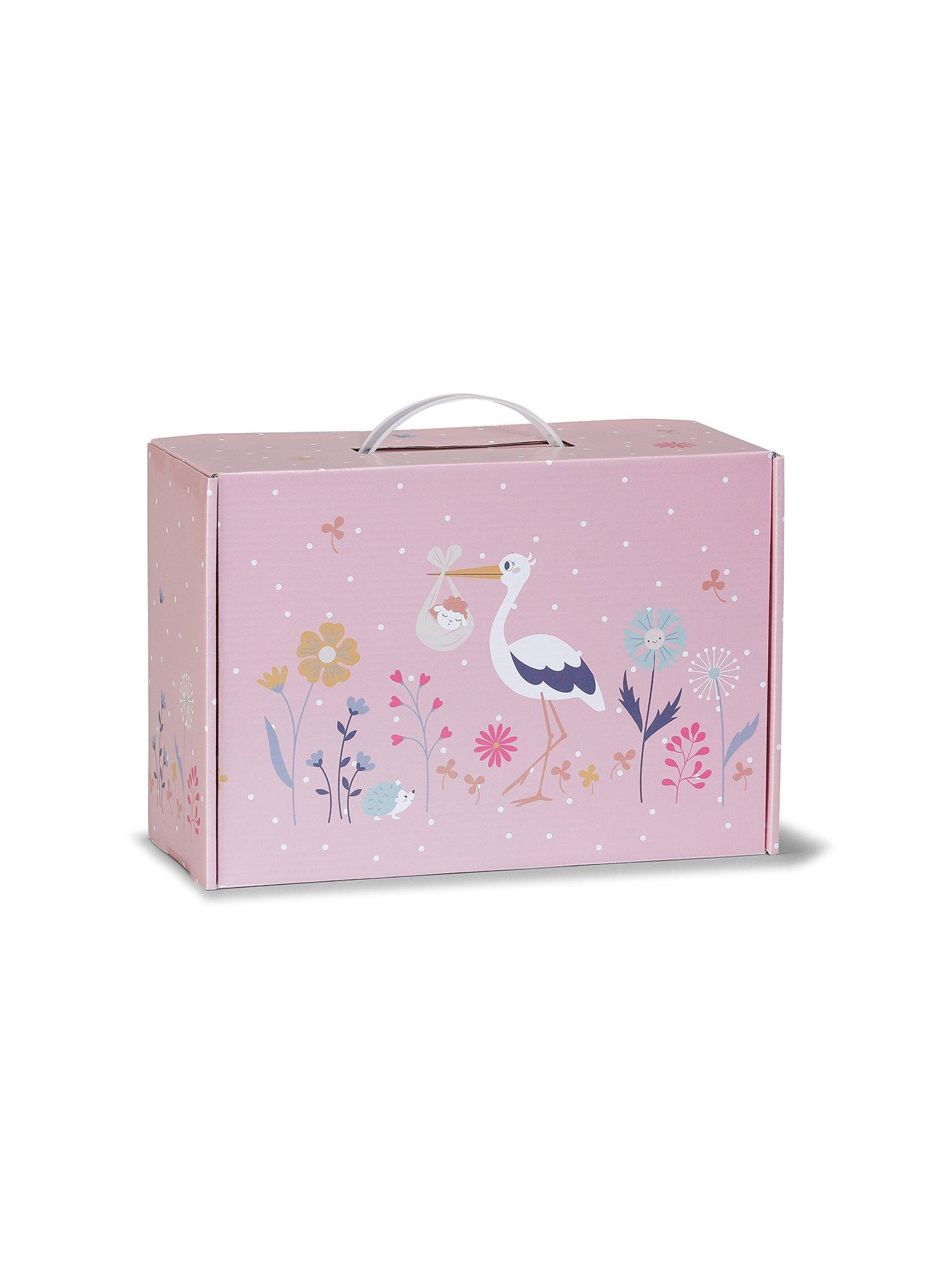 The Baby Annabell First Arrival Set 43cm is a wonderful starter set for any little mummy or daddy!Ready to introduce your little one to the world of nurturing play with the Baby Annabell First Arrival Set? It's time to let the fun and creativity begin!Complete Outfit The set includes a short-sleeved romper, soft trousers, a printed t-shirt, an adorable cosy jacket, a hat, shoes, and more. There’s even a pink teething ring, a charm, a dummy, and nappy! Stylish Box The box features a sweet stork graphic and a handle, which can double up as a carry case for easy transportation and storage. Perfect Fit Designed to fit all 43cm Baby Annabell dolls (sold separately), ensuring a perfect match for your favourite doll.