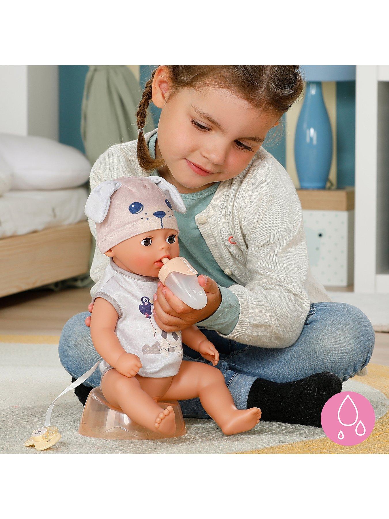Baby Born BABY born Lukas Dog 36cmMeet BABY born Lukas, the adorable baby boy starter doll designed to make nurturing play simple, gentle, and full of fun. With 8 lifelike functions, Lukas helps children explore everyday care routines and develop empathy through realistic roleplay.Lukas can drink water from his bottle, wet his nappy for changing, or use his potty - just like a real baby. His magic dummy lets little ones open or close his eyes by turning it left or right, and when he's laid down, his eyes close naturally for nap time. He's also bathable, so playtime can continue in the tub! Add water to his bowl to reveal a funny face and see the colour change in his nappy when he uses it! Perfect for children aged 1 year and up, Lukas features super moveable limbs that make dressing, feeding, and cuddling easy for small hands. He comes complete with 6 accessories: a bottle, dummy, reusable nappy, plate, spoon, and potty - everything a young doll parent needs to start their nurturing adventures. No batteries required, just imagination and love!