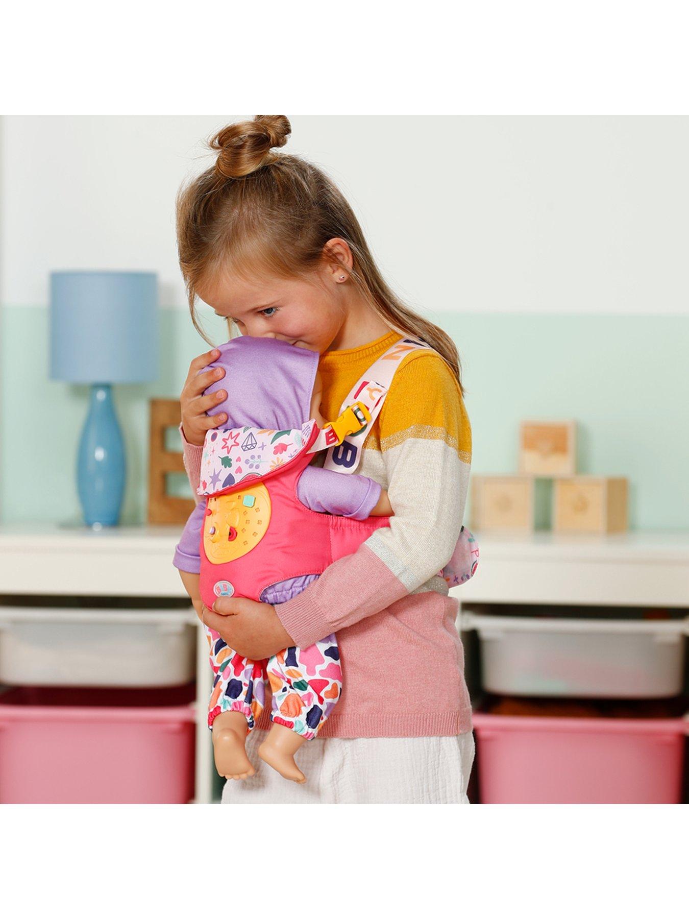 Doll Baby CarrierFor children who want to keep BABY born close, this beautifully designed Baby Carrier does the trick! They can pop BABY born in the carrier and attach it to themselves - it can be worn on either their front or back - and adjust the straps to make it super-comfortable. This means BABY born accompanies your child wherever they go - to the park, the shops or even if they're simply pottering around the house.For added fun, the Baby Carrier comes with cool sewn-in patch and plastic decorative pins for adding an individual sense of creativity and flair. Once your child is done designing, you can keep any spare pins in the handy storage box. Suitable for 36cm and 43cm dolls. Suitable for children aged 3+ Doll not included.