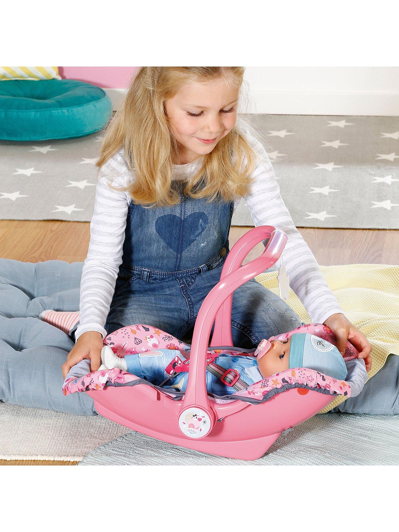 Baby Born Doll Comfort SeatA must-have accessory for any BABY born fan, this BABY born Comfort Seat is perfect for all-day-play. The lightweight design means children can strap their BABY born into the seat and carry her around using the easy-to-hold handle. After they're done exploring, little ones can flip the handle and prop BABY born up as it turns into a seat. If their baby is getting tired they can flip the handle back and gently push the Comfort Seat to make it rock back and forth. Plus, if a road trip is on the cards, the Comfort Seat can be strapped into the car and BABY born can join the family on day trips! The play never stops with BABY born!Multi-purpose accessory; can be used as a seat, a carrier, a rocker or a car seat. Fits dolls up to 43cm. Suitable for children aged 3+. For enhanced and long-lasting fun through imaginative play with dolls.