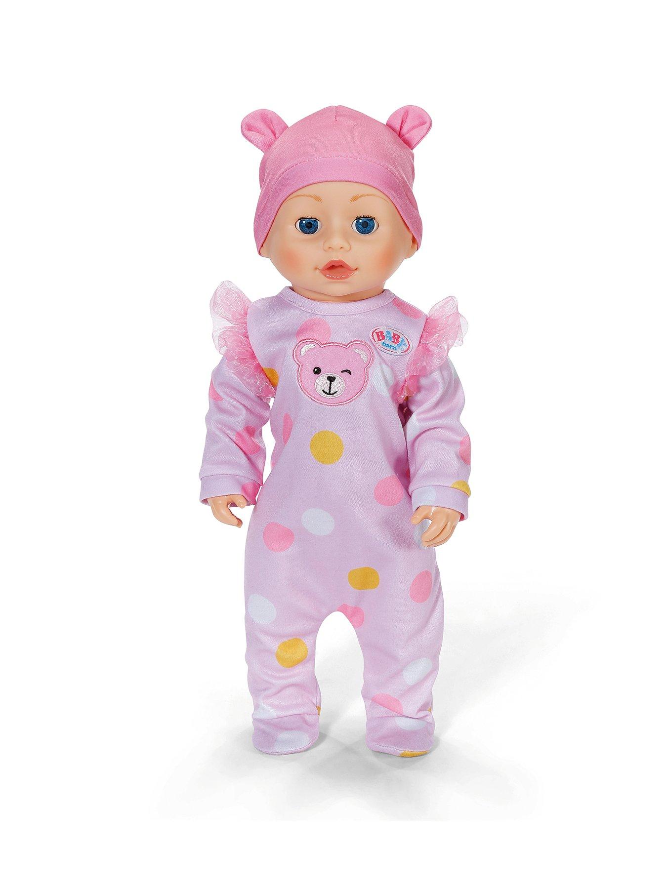 Baby Born Emily First Steps Doll 43cmLet's go! BABY born Emily Walk with Me is on the move!Bringing even more fun to everyday playtimes, this adorable doll comes with 6 realistic features to enhance your child's nurturing side with imaginative role play. Set Emily into position and she will crawl by herself! Push her tummy button and she'll do it again and again. Your little one can even help her take her first steps. Carefully click her into place and hold her hands whilst she starts to walk with your help. Don't worry, if she falls you can quickly soothe her with a cuddle. Give her tummy a tickle to hear her giggle. When sitting upright, you can tilt her backwards and watch her kick her legs and move her arms whilst making the cutest baby sounds. After all that hard work, Emily will make yawning and sleeping sounds when rocked and her eyes close when laid down for bed. - BABY born Emily walk with me 43cm with pink romper and hat - Can crawl on her own - Hold her hands to help her take her first steps - Press her tummy button to hear her giggle - Yawning and sleeping sounds - Watch her kick her legs and move her arms when sitting - Soothe her crying with a cuddle and pat on the back - Suitable for children aged 3+ - Requires 3x AA Batteries - 100% Plastic Free Packaging Emily can share clothing and accessories with other 43cm dolls including BABY born Emma and Baby Annabell. From waking in the morning and learning to crawl to taking a ride in her lovely pram, your little ones will love spending the day with Emily. With advanced functionality, we recommend that you read the instructions before play.