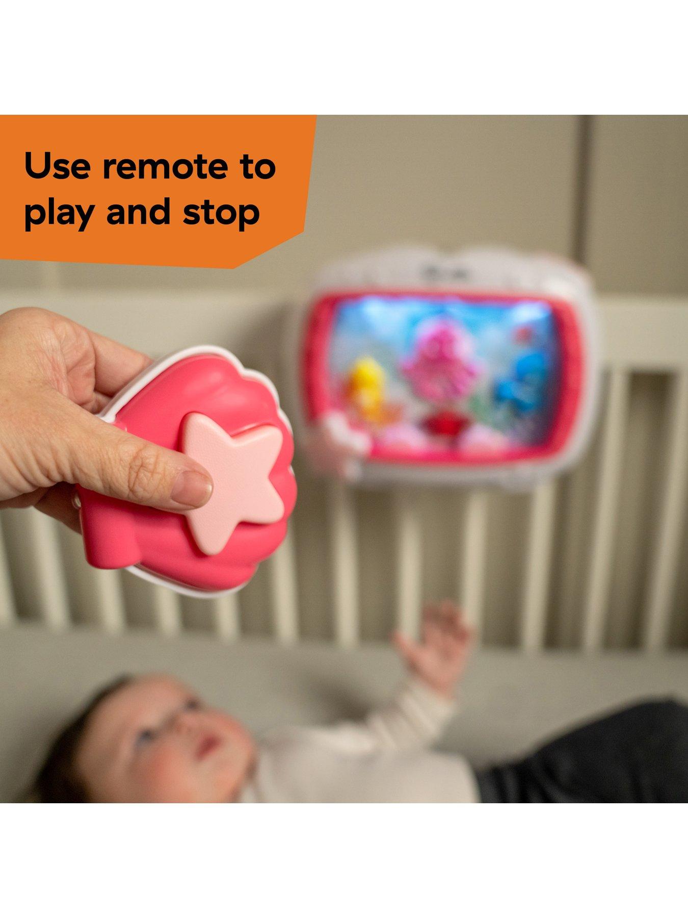 Baby Einstein Sea Dreams Soother Sleep SootherHelp your little one sleep soundly with the #1 Baby Einstein Sea Dreams Soother Sleep Soother* in Pink, our best-selling crib soother with thousands of 5-star reviews. A new parent 'must have', this ocean-themed soother has been soothing babies for over 10 years with 25+ minutes of gentle melodies, soft ocean sounds, and twinkling lights. Attach easily to most crib rails or place on a bedside table to help soothe babies 0 months and up. 4 modes let parents customize settings to meet baby's needs, with relaxing combinations of soft lights, serene music, soothing ocean sounds, and characters that gently sway to relax baby during quiet time or sleep. Parents will love this soother's Drift Off function, which gradually softens the lights and sounds every 10 minutes to help baby fall asleep. To prevent wakeups, use the remote control to activate or stop the soother from up to 12 feet away. Dimensions: 22.1 cm (H) x 13.26 cm (W) x 30.23 cm (L). Wipes clean. Remore requires 2 AAA batteries (not included). Soother requires 4 C batteries (not included). (*Circana, Retail Tracking Service, Other Infant Toys, U.S. dollar sales, April 2023 - March 2024 combined)