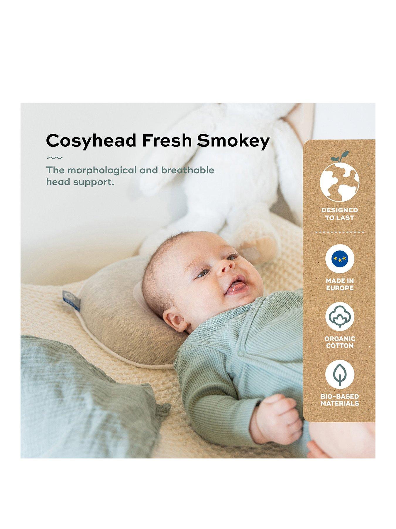 Cosyhead FreshLovenest+ Fresh, the head support that helps reduce flat head syndrome to ensure proper development!Co-developed by renowned Pediatrician Dr Manuel Maidenberg, this unique head support is especially designed to respect your baby's morphology. It provides an optimal position that prevents plagiocephaly and maintains your baby's head perfectly round, ensuring pressure distribution on the baby's skull. The Lovenest+ Fresh is made of Lyocell-Tencel, a naturally ultra-soft and breathable material that ensures good ventilation of the head and neck to limit baby's sweating. Versatile and practical, this head support can be used from birth in various environments, whether in a bouncer, carrycot, stroller, etc. Its portable and compact design allows you to take it with you everywhere, providing your baby with the same comfort wherever you go. Featuring a non-slip back for better grip, the Lovenest+ Fresh is reccommended for use up until your baby is 3 months old or able to roll over unaided. Made in Europe, this pillow offers your infant a healthy, comfortable and non restrictive support for proper development." "Why you'll love it? - Specific tilt and shape to ensure pressure distribution on the baby's skull and maintain a round head. - Morphological cushion that prevents plagiocephaly in babies. - Technology co-developed by Dr. Maidenberg, a French pediatrician. - Wide, plush head cushion to adapt to baby's growth. - Non-slip back for added safety and better support. - Portable: can be used anywhere (stroller, bouncer, car seat, etc.). - Usable from birth up to 3 months of age. - Made in Europe - Machine washable at 30°C.