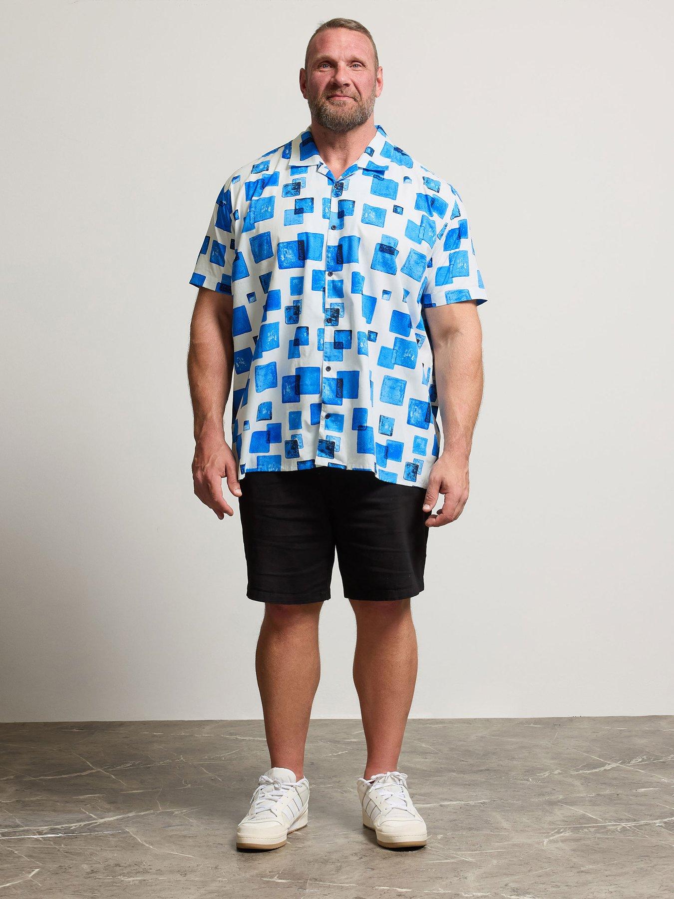 Badrhino Square Print Short Sleeve ShirtMaterial & Care