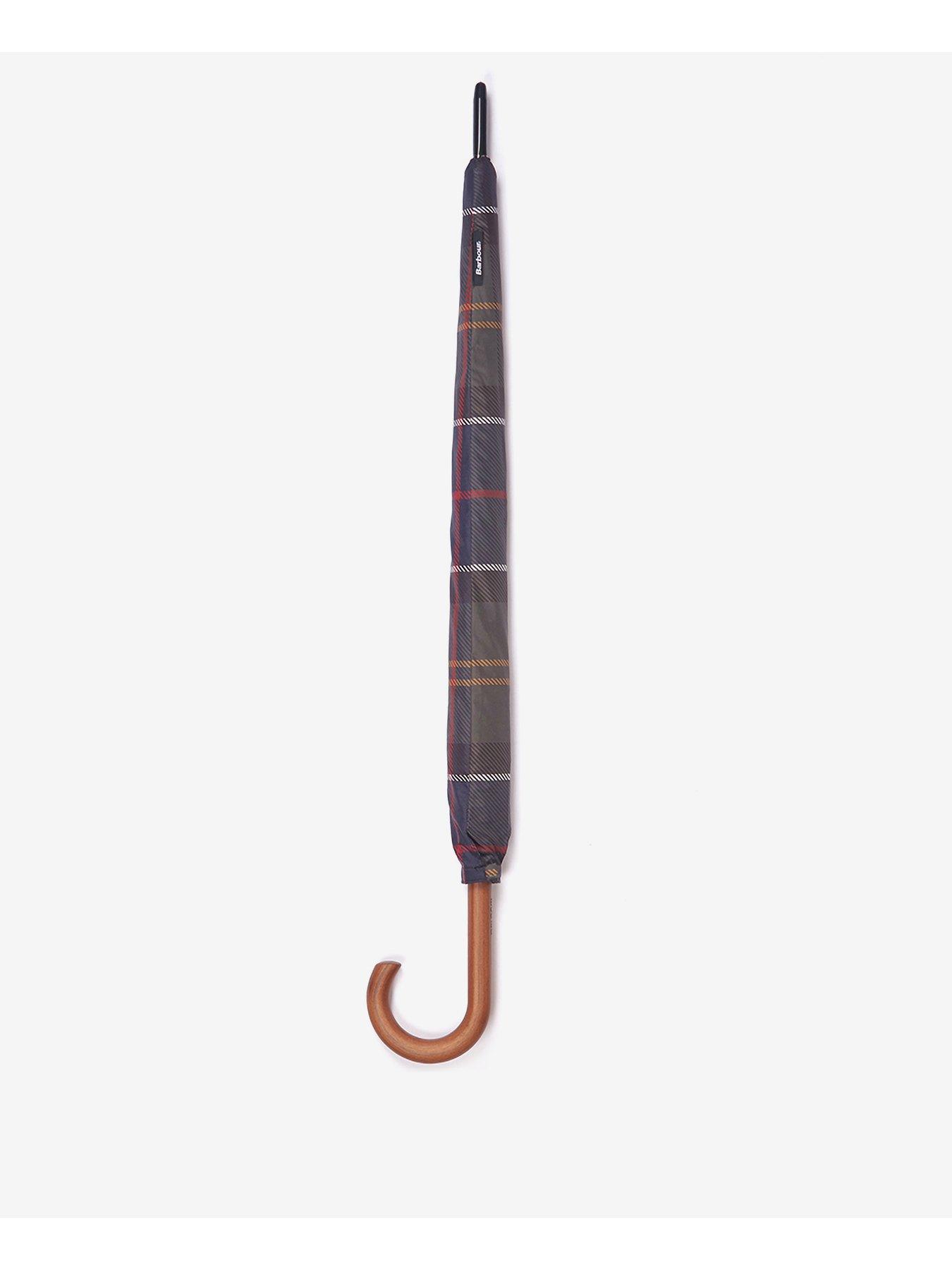 Barbour Tartan Walker Umbrella - Dark GreenThis walking-style umbrella is constructed with a wooden crooked handle and a colour-woven canopy featuring extra-large-scale Barbour Tartan. It comes complete with an outer cover finished with a woven Barbour label.