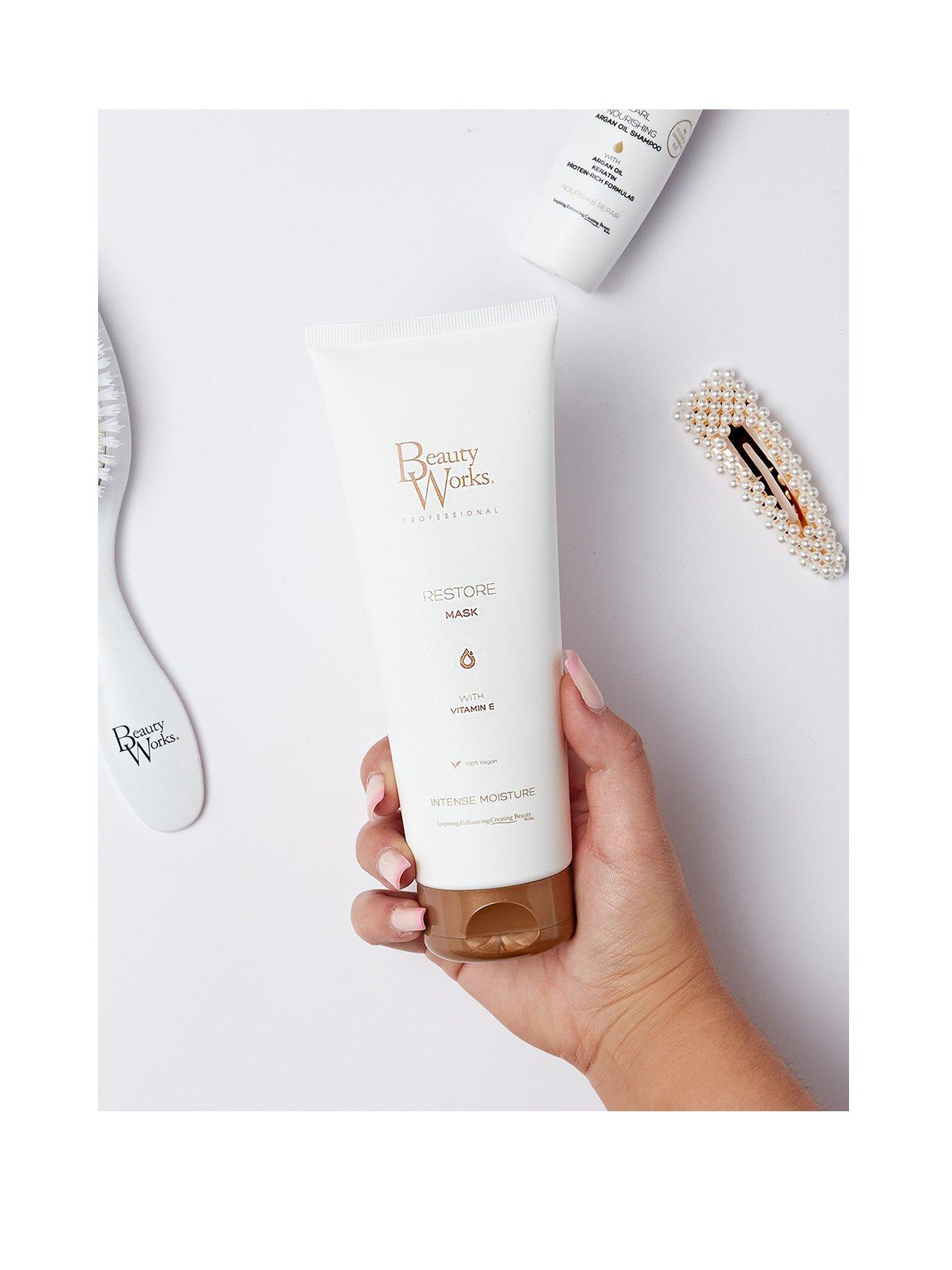 Get softer, smoother strands with Beauty Works Restore Mask.Formulated to replenish dry or dehydrated strands, Beauty Works' intense Restore Mask offers a 10-minute hair therapy that contains ingredients to help improve elasticity and strengthen the hair.This reconstructive hair mask coats the hair with anti oxides and seed oil, packed with vitamin E, which is key for strengthening strands, especially if you've been going for it with the heat styling or chemical treatments. | |