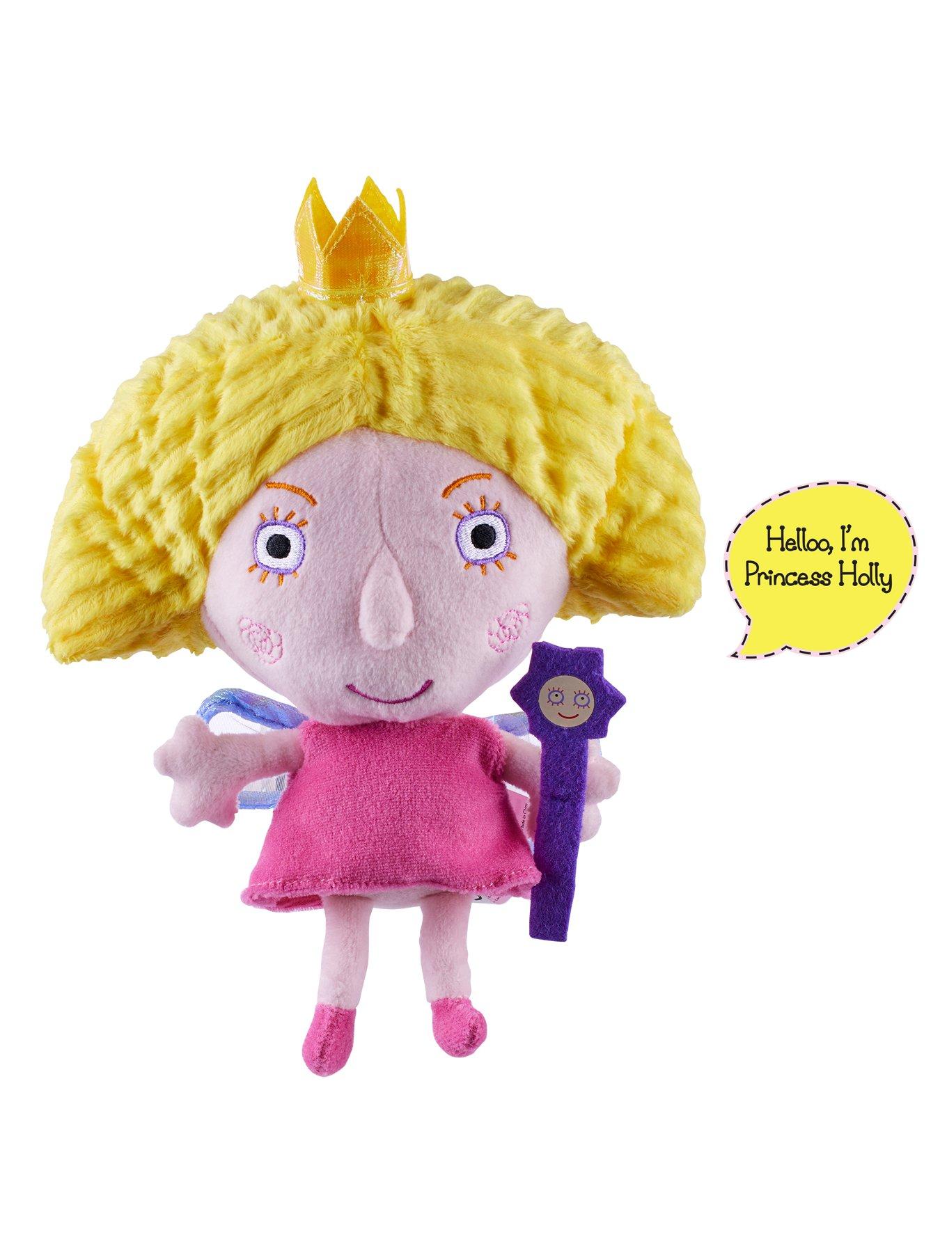 The Ben & Holly's Little Kingdom Talking Plush - Holly is a super soft and cuddly toy that brings the magic of the show right into your home!Interactive FunPush Holly's tummy to hear her talk! She says fun phrases from the show, making playtime even more exciting. Soft and Cuddly Made from supersoft fabric, Holly is perfect for snuggling and comforting your little one. Classic Styling Holly looks just like she does in the TV show, with her adorable elf outfit and friendly smile. Perfect for Little Fans Ideal for children aged 18 months and older, this plush toy is a great companion for any Ben & Holly fan.