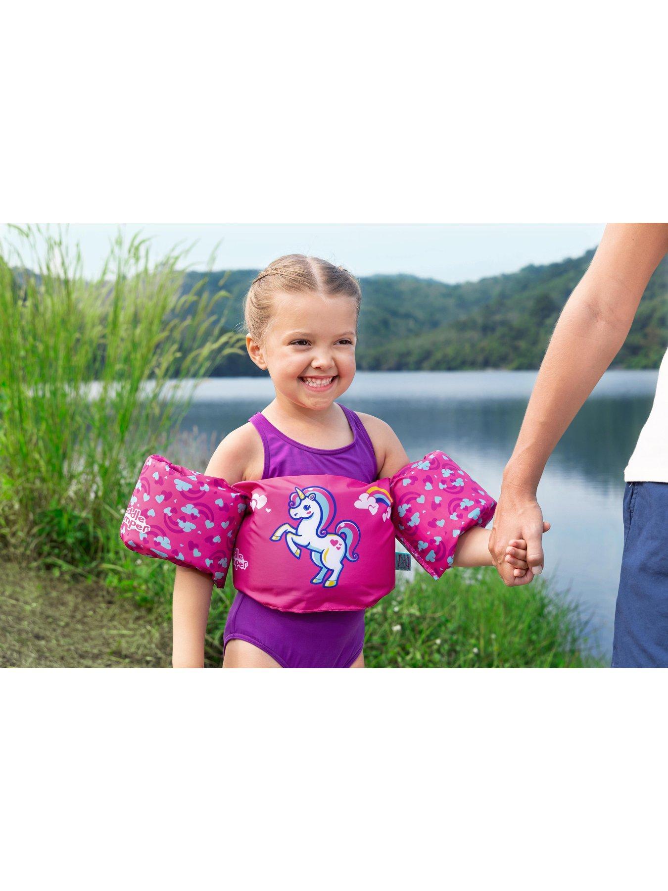 Bestway Puddle Jumper Swim Vest - UnicornHave a summer full of splash-filled smiles with the Puddle Jumper Child Swim Vest!Help your child, 15-30 kg (33-66 lbs), build water confidence in this bright swim vest, featuring fun, imaginative graphics. Reviewed & Tested: The Puddle Jumper Child Swim Vest has a kid-friendly smooth, strong polyester material and built-in foam pads, which are tested for buoyancy and durability. Secure Fit: The swim vest includes buckles that snap in the back where they can't reach, and an adjustable strap to create a snug fit while keeping kids secure as they splash the day away. Whether it's their first introduction to the water or they're paddling pros, the Puddle Jumper Child Swim Vest will keep them comfortable all summer long.
