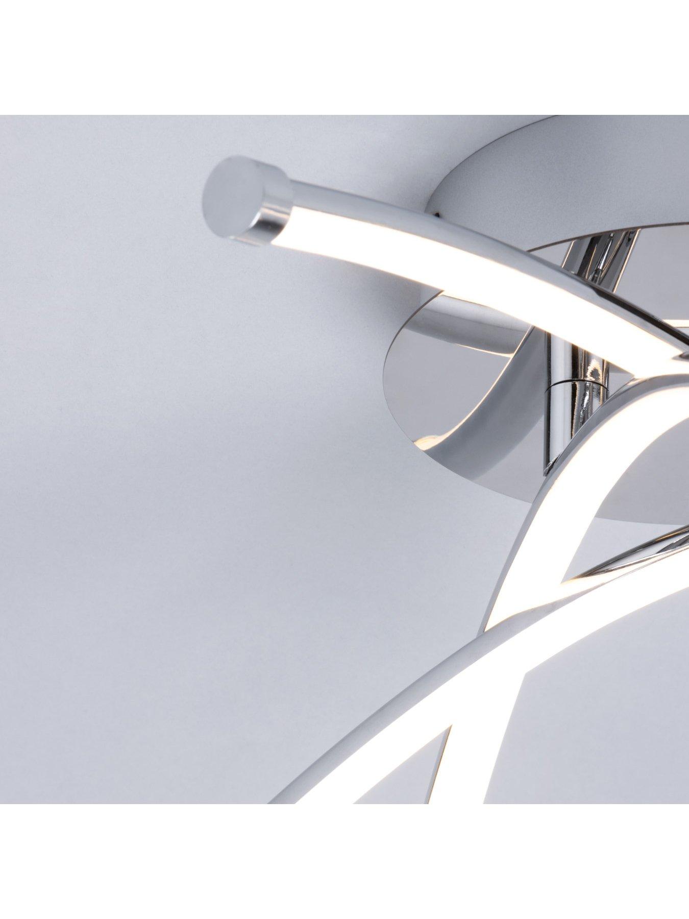 BHS Aalto LED Flush Fitting in Chrome - 46 cm diameterThis striking Aalto flush fitting from BHS represents the very latest in contemporary home lighting, with integrated LED bulbs that allow for a truly striking shape. Three curvy arms criss cross one another for a bold and eye-catching look, while the shiny chrome finish ensures it stands out as much in the day as it does when it's switched on at night. Alternative colours are available to add separately.Dimensions: Height 15.5, Diameter 46 cm