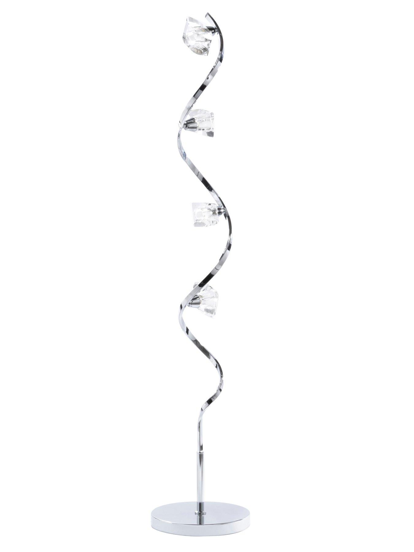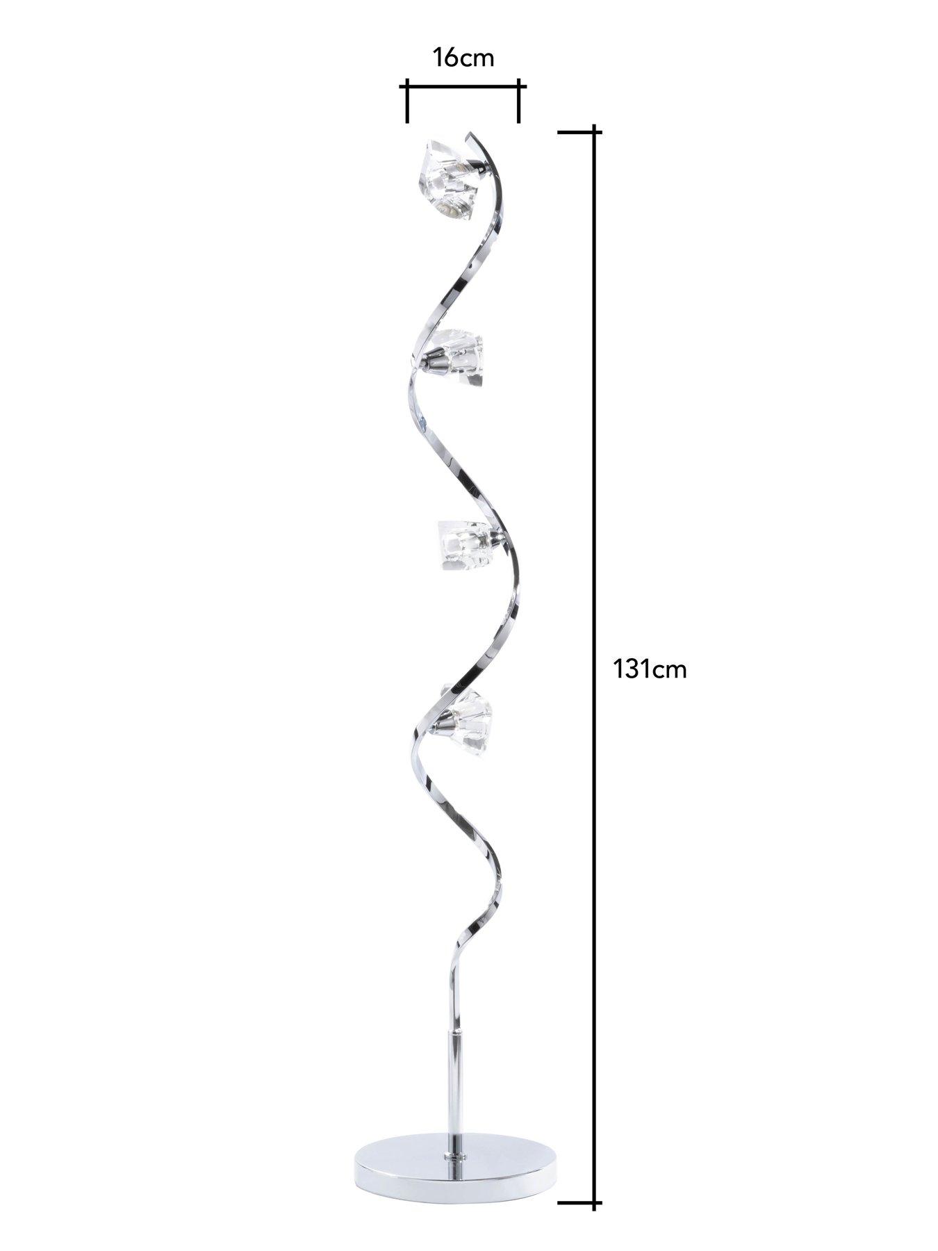 BHS Bella 4-Light Floor LampThis Bella lamp has so much glitz and glamour packed into its design that it's perfect for adding the wow factor to any area of your living space - from a unused corner in the dining room to a key spot in your lounge.The wavy metal stem twists and turns as it rises, while a shiny chrome finish glints when the light catches it. This supports a quarter of bright lights which sit under cut glass jewels that shimmer when you illuminate them in the evening. Requires 4x G9 capsule bulbs (not included).