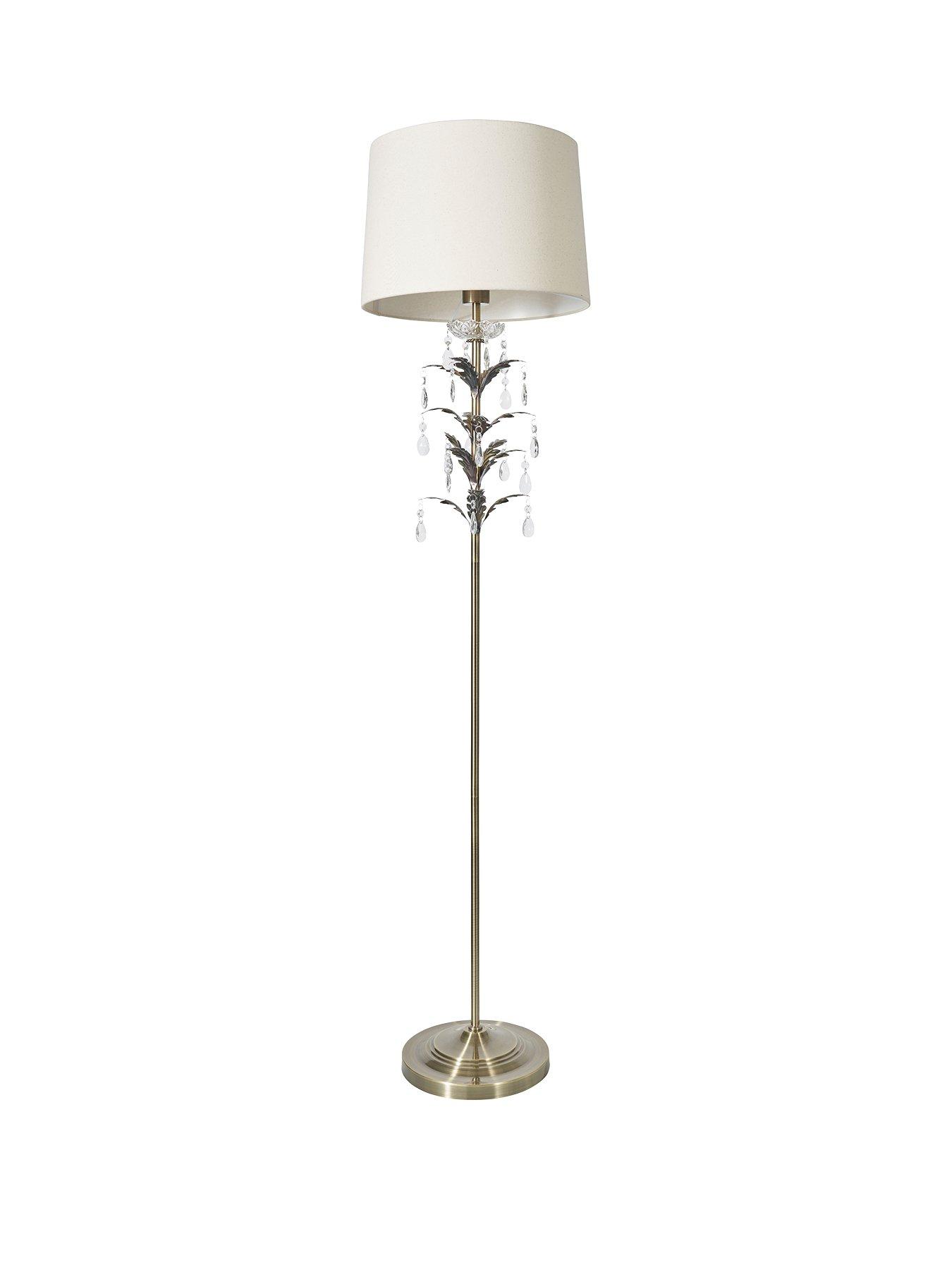 BHS Paisley Floor Lamp - 156 cmAdd opulence to a ceiling in your home with this striking floor lamp by BHS. Made from metal in an antique brass finish, it features stunning leafy trims to the stem. These are adorned with acrylic dressings and droplets that shimmer when the light catches them. Perfect for any room in your living areas or bedroom, it's detailed with a white linen shade that softens the light as it passes through. A matching ceiling fitting is available separately. Requires 1x E27 GLS LED 10w Max bulb (not included).Dimensions: Height 156, Diameter 38 cm