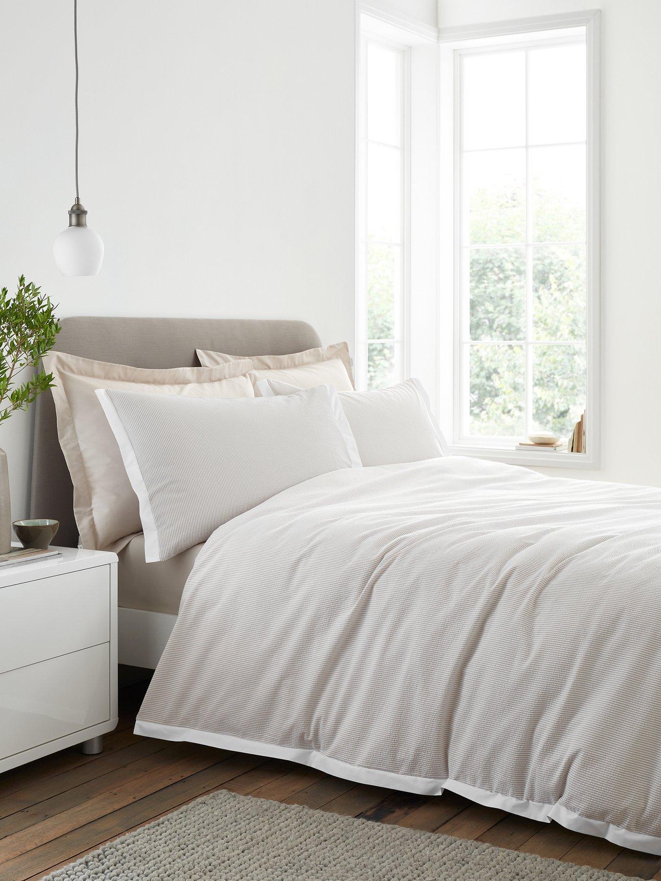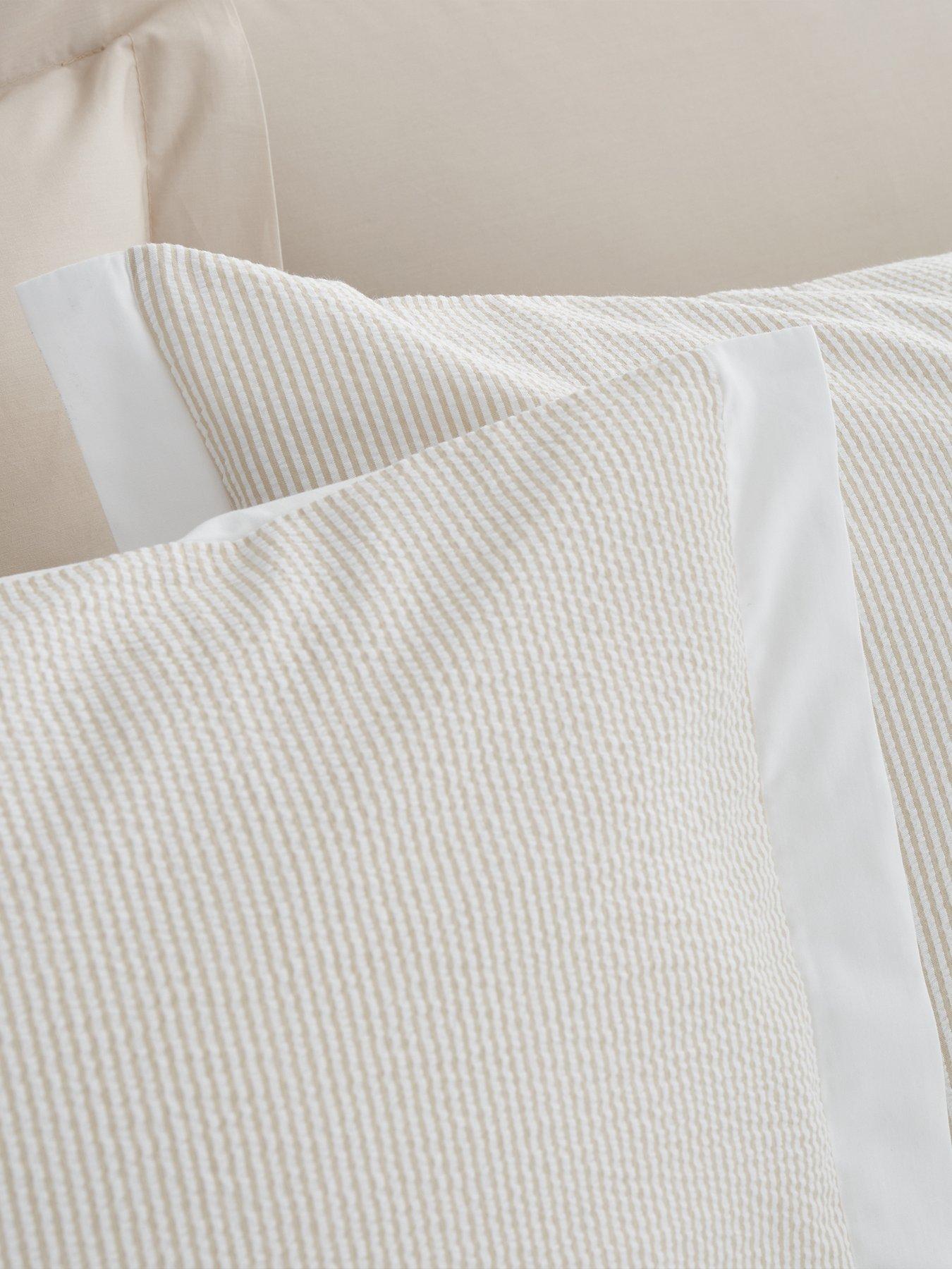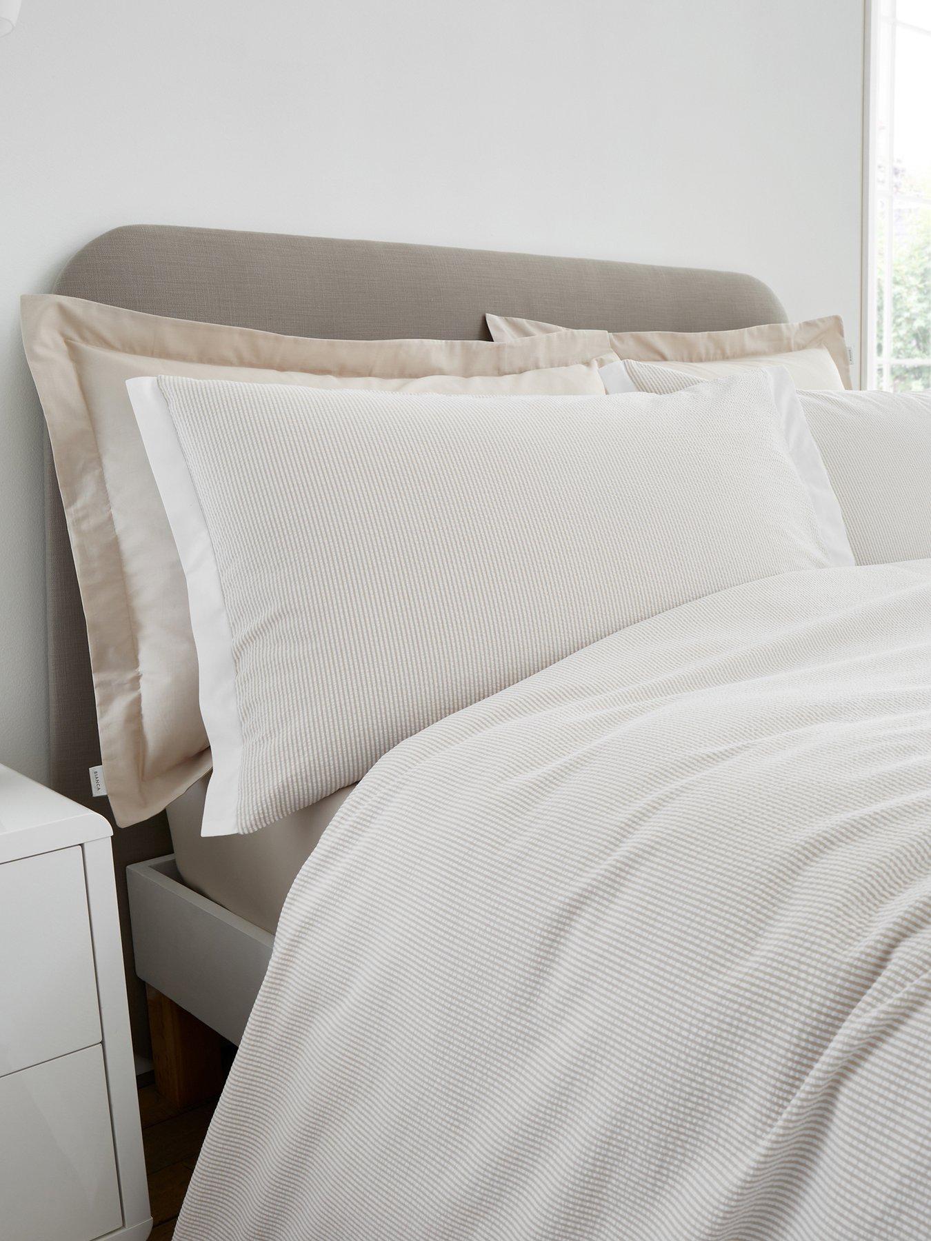 Bianca Seersucker Woven Stripe Duvet Set NaturalBianca evokes a sense of well being and relaxation perfect for creating a calming retreat with timeless styling for the modern home.Elevate your sleep space with the effortless texture with this woven seersucker duvet set creating a soft and calming space. Designed with subtle tonal stripes, this set blends laid-back sophistication with breathable comfort , perfect for creating a calm, contemporary retreat. Dream in blissful comfort under wonderfully soft 200 thread count percale cotton, a beautiful naturally breathable fibre that encourages a better night's sleep.