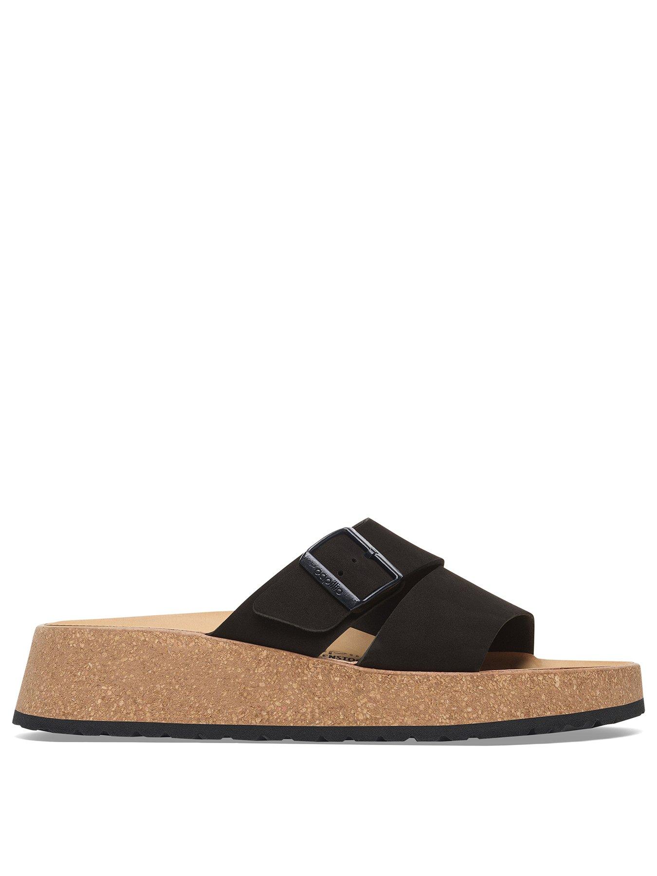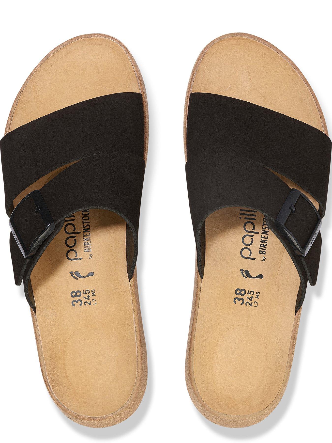 Birkenstock Almina Nubuck SandalsThe Almina sandal from Papillio is a platform sandal with a with a slight. flared wedge heel. Its optimum stability thanks to the wide strap at the instep makes it a real hit with women who want both high fashion and comfort. The upper is made from high-quality. soft nubuck leather that boasts a natural. rustic appearance..Anatomically shaped cork-latex footbed