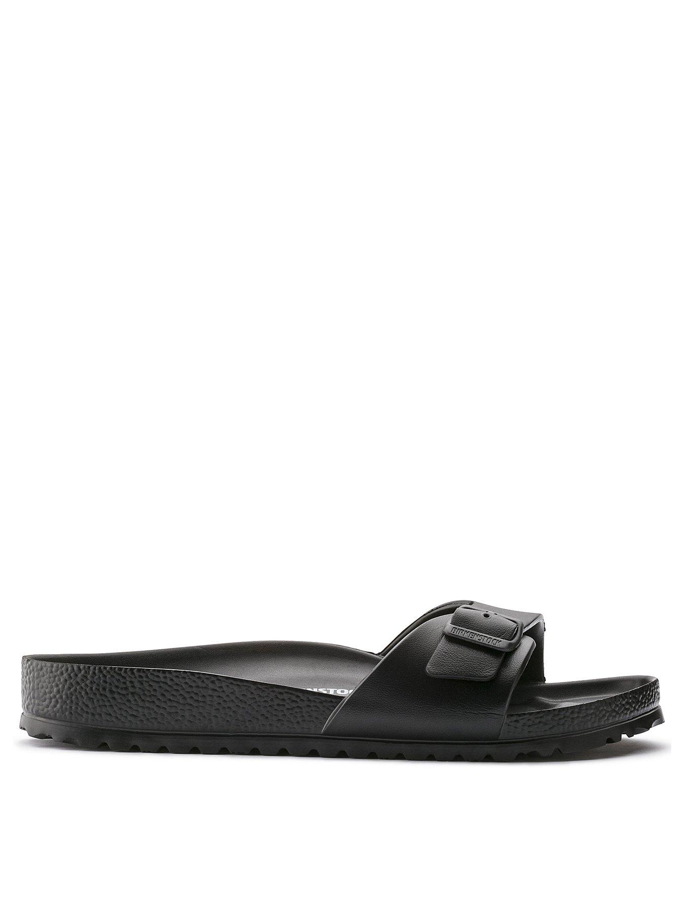 Birkenstock Madrid Eva Flat Sandal - BlackOur classic one-strap sandal. now available in a no-fuss. waterproof EVA. Super lightweight - great for the gym or the beach...EVA one piece molded construction - a waterproof and lightweight synthetic material