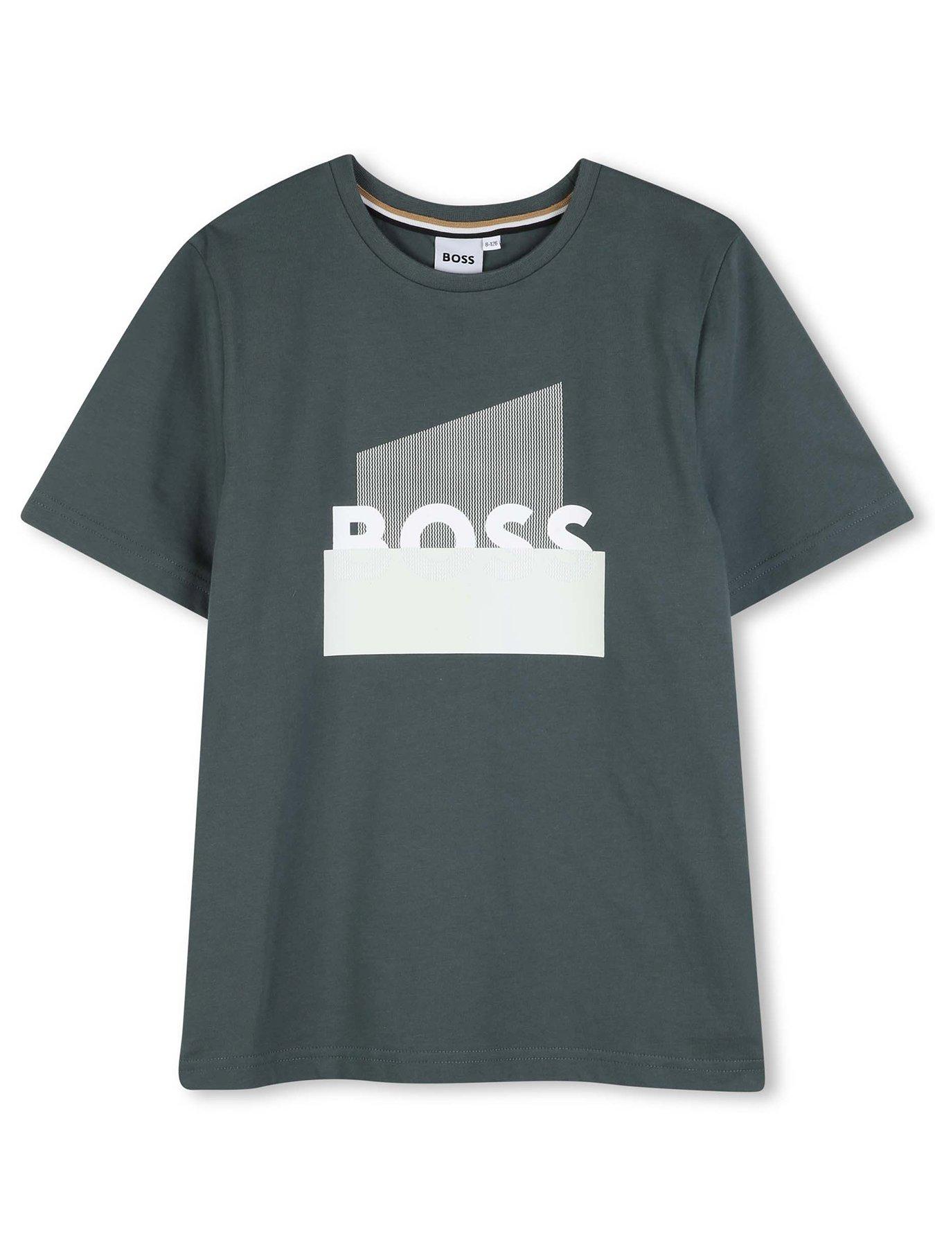 BOSS Boys Graphic Short Sleeve T-shirt - GreenShort-sleeved cotton jersey T-shirt with BOSS graphic centered on chest.
