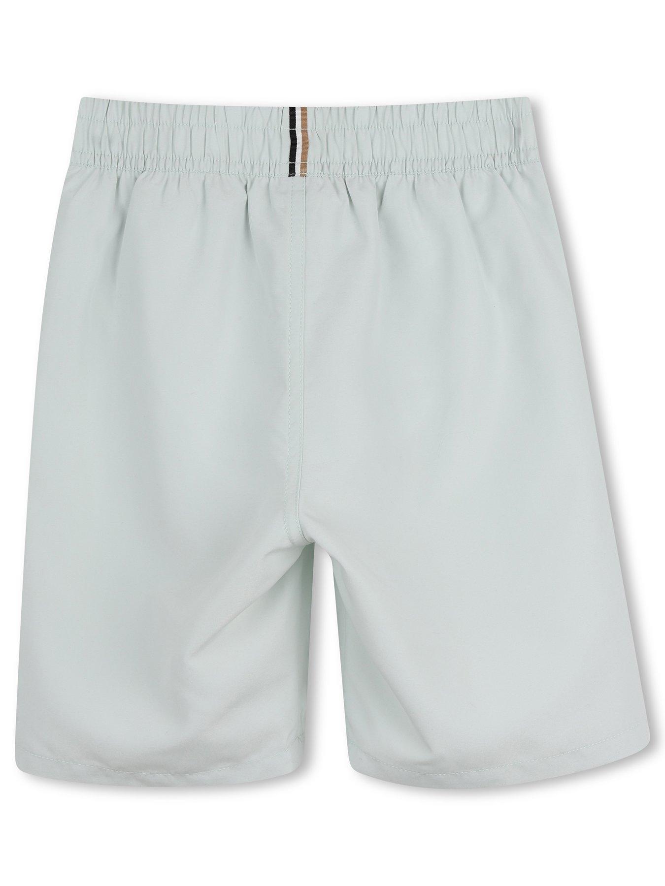 BOSS Boys Logo Swim Shorts - Light GreenPermanent surfer with seasonal colors. Elasticated waistband and drawcord. Large horizontal BOSS logo.